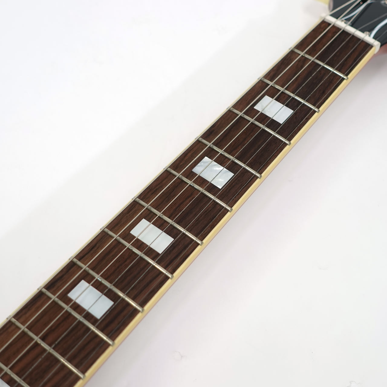 5プライのラミネート・メイプル/ポプラ・ボディを採用し、丸みのあるカッタウェイとソリッド・メイプル・センターブロックにより、優れたサステインとフィードバック耐性を実現しています。ワンピース・マホガニー・ネックは薄めの1960sスリムテーパー Cプロファイルを採用し、ローズウッド指板には22本のミディアム・ジャンボ・フレットとマザー・オブ・パールのスモール・ブロック・インレイを装備。