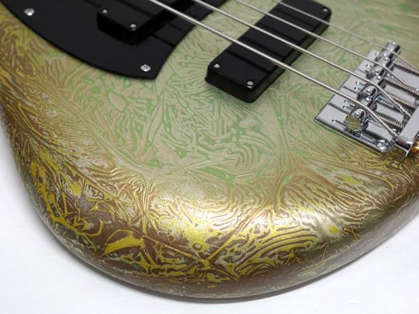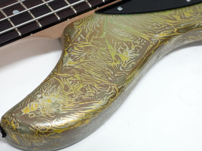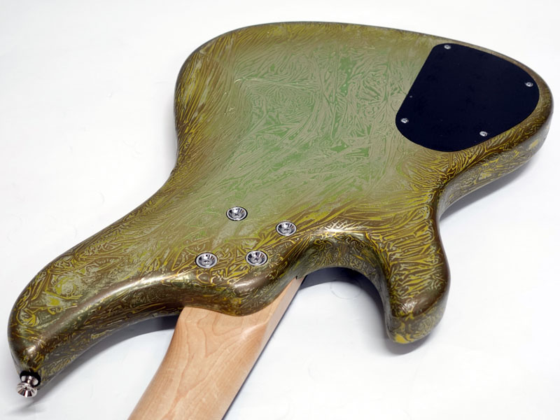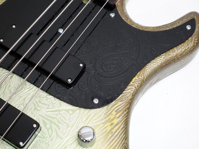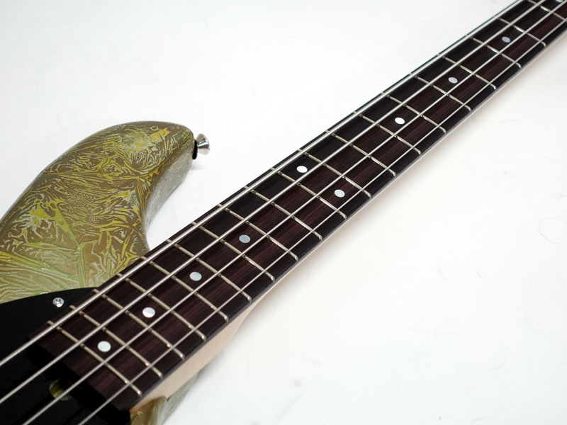 ジャズベースを基本としたオリジナルシェイプはボディバランスが良好で、ハイポジションでの演奏性やスラップ奏法時に気になる「ピックガードと弦の距離感」までをも考慮に入れた設計。