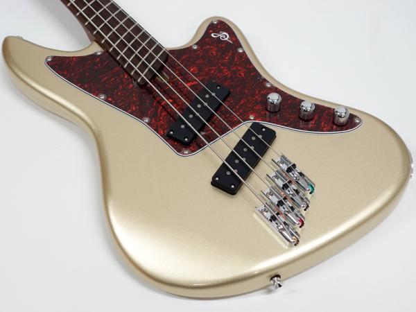 ファンドフレットというと奇抜で少し手の出しにくいイメージがあるかもしれませんが、本機はジャガーベースタイプをもとに設計していることもあり、可愛さとスタンダードなかっこよさを残しつつ、新しいベースとしてアイコンとなるようなデザインとなりました。