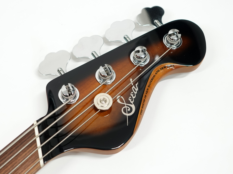 ファンドフレットというと奇抜で少し手の出しにくいイメージがあるかもしれませんが、本機はジャガーベースタイプをもとに設計していることもあり、可愛さとスタンダードなかっこよさを残しつつ、新しいベースとしてアイコンとなるようなデザインとなりました。