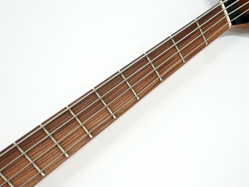 低音弦側の方がスケールが長くなることにより、弦の張り感と音程感が良くなり、扇状に動く手首の動きにもリンクするため、弾きやすく感じていただける方もいると思います。