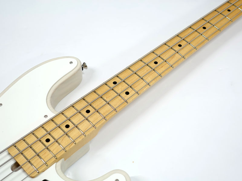 本器は1951年に産声を上げたFENDER最初のベース、プレシジョンベースのオーセンティックなルックスを再現したモデル。アッシュボディに1ピースのメイプルネック、2WAYサドルという仕様です。