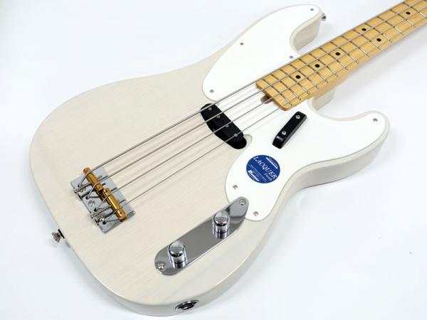 53年までのコンターの無いボディのプレシジョンベースを再現したモデルはアッシュボディにメイプル指板の組み合わせでシングルコイルのGROOVE50'S OPを搭載しています。ヘッドシェイプ、ホワイトガード、クローム製のコントロールパネルとノブ、ジャックなどテレキャスターと共通する部分も多くテレキャスターベースとも呼ばれています。