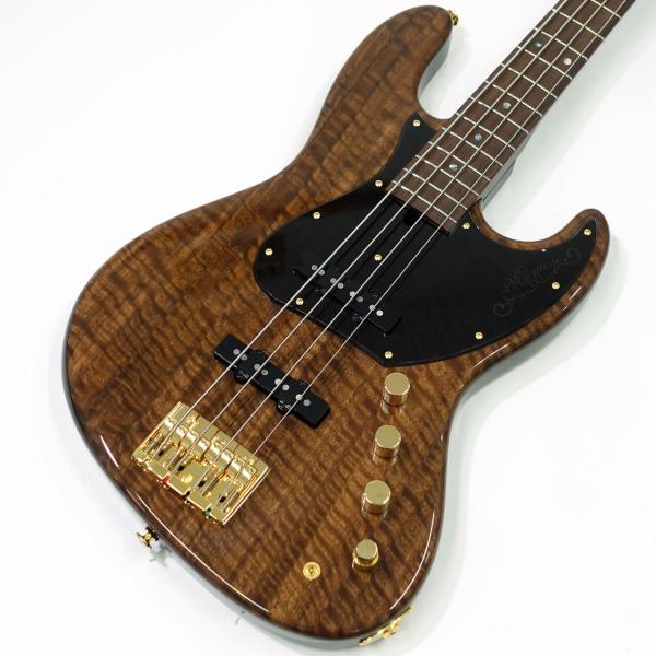 モモセオリジナルのヘッドが特徴的なMJをベースに、ボディトップにユーカリを採用。