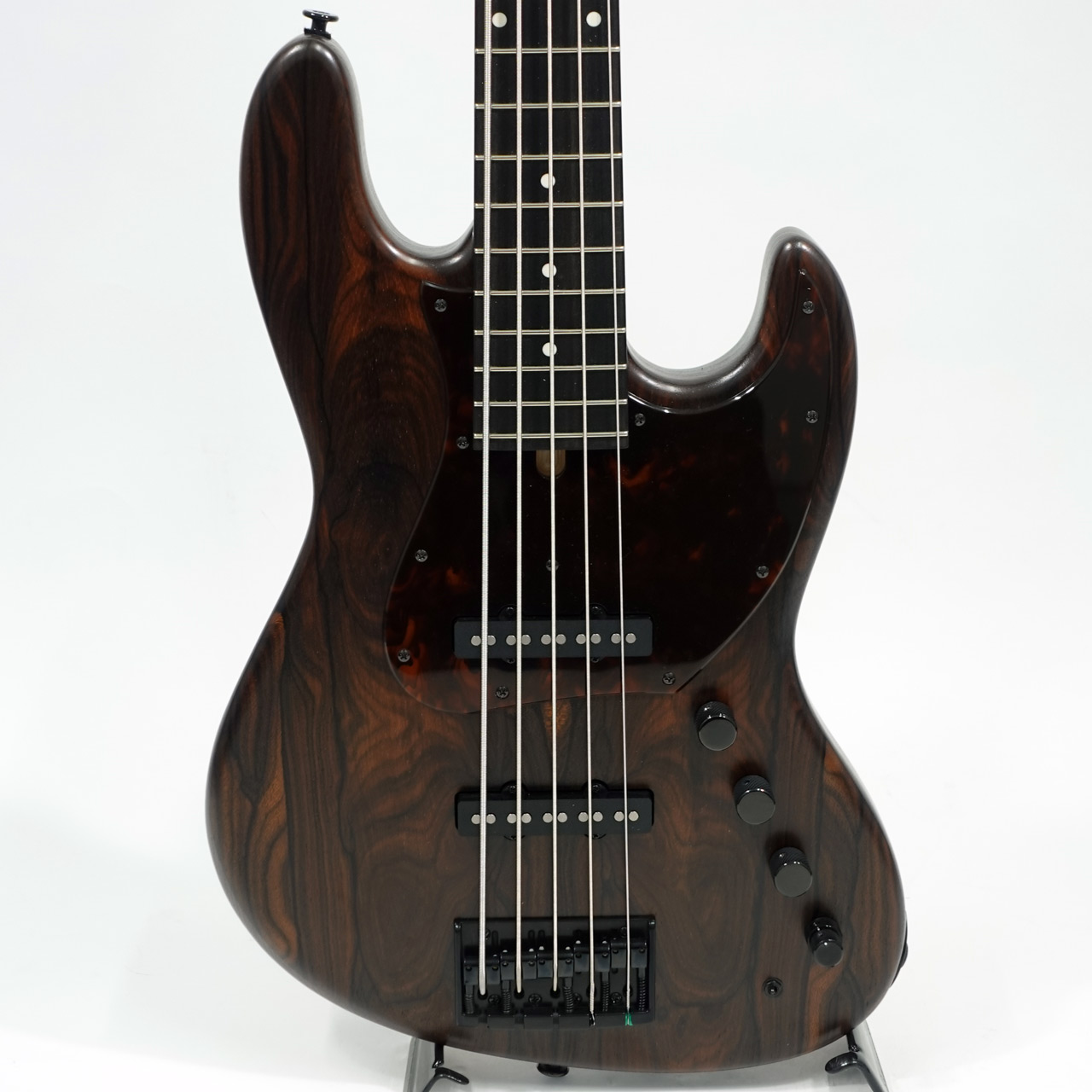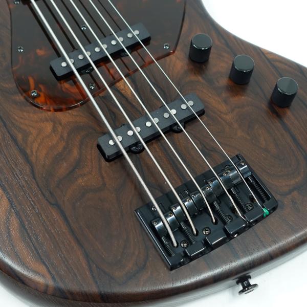 また5弦のLOW-Bを含めローエンドからハイエンドまでバランスの良いクリアなサウンドで様々なジャンルに柔軟に対応できるハイエンドな一本。
