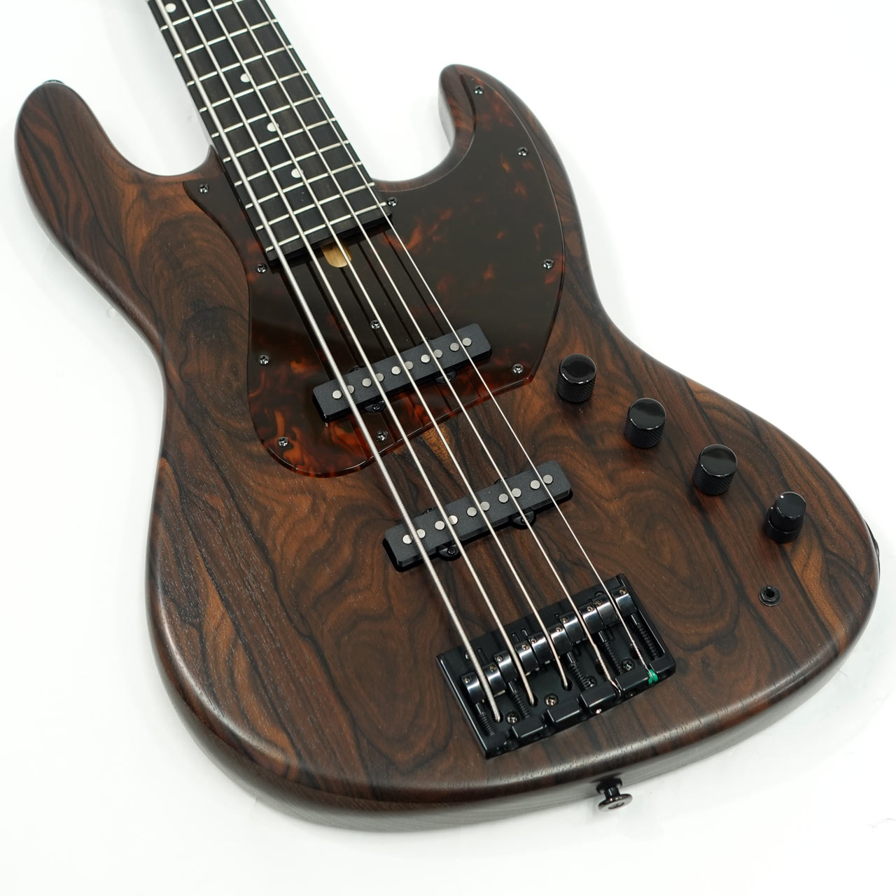 サウンドは元々国産ベースが持つバランスの良さと日本の音楽シーンがJBに求めるシャープさや抜けの良さには定評のあるmomose。硬質なジリコテ材をトップに採用しマット塗装にしたことで、エッジが効きつつレスポンスの良い安定したサウンドを出力してくれます。
