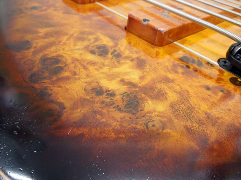 限定モデルのエキゾチックなポプラバールトップにローステッドバーズアイメイプル指板のSR5弦!