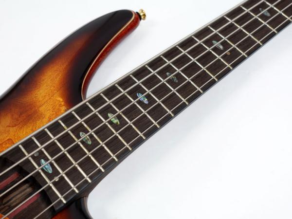 マホガニーボディに杢目の出たポプラバールトップ、指板にはパンガパンガ材に5Pマルチプライネックで高い剛性を獲得しています。