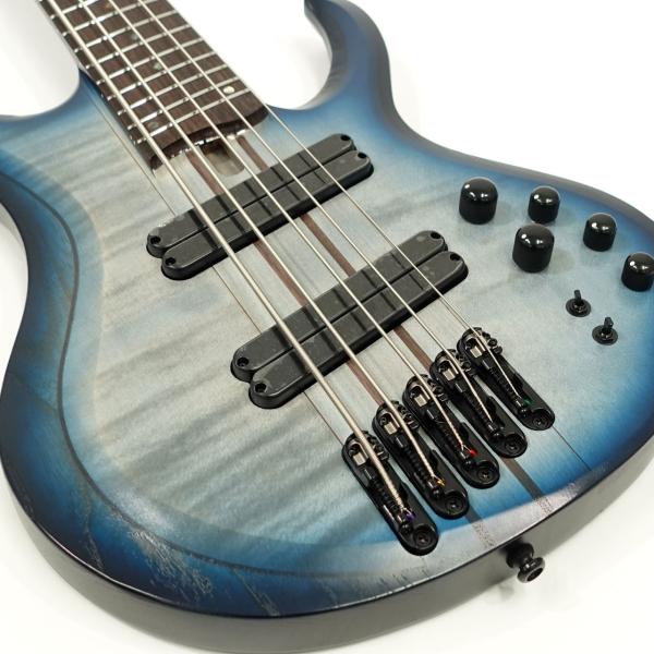 スケールは、5弦側でBTBの特徴である35インチ、1弦側は34インチのマルチスケールです。ゲージが太くなる低音弦でも芯の有る鳴りを確保しつつ、一般的なロング・スケール・ベースとの弾き心地の差異を極力減らす、BTB-LMモデル独自の設計です。