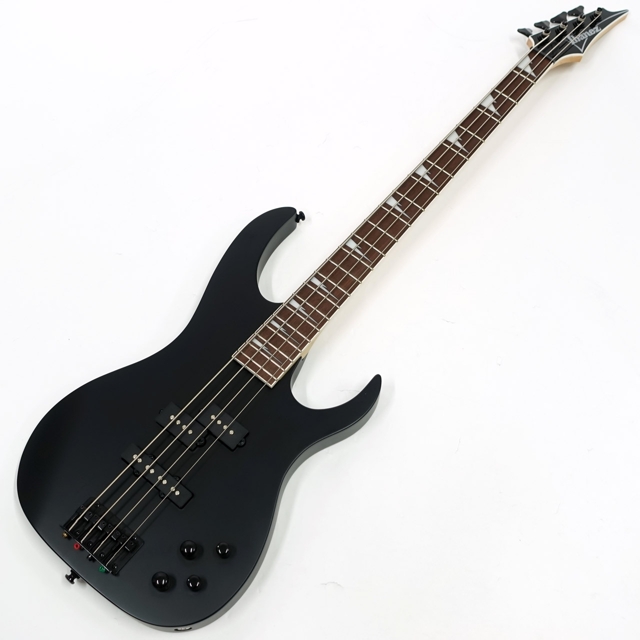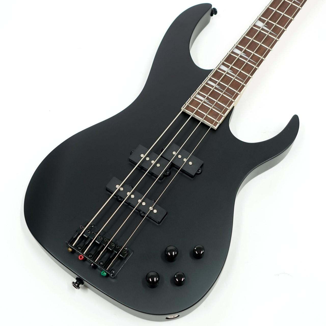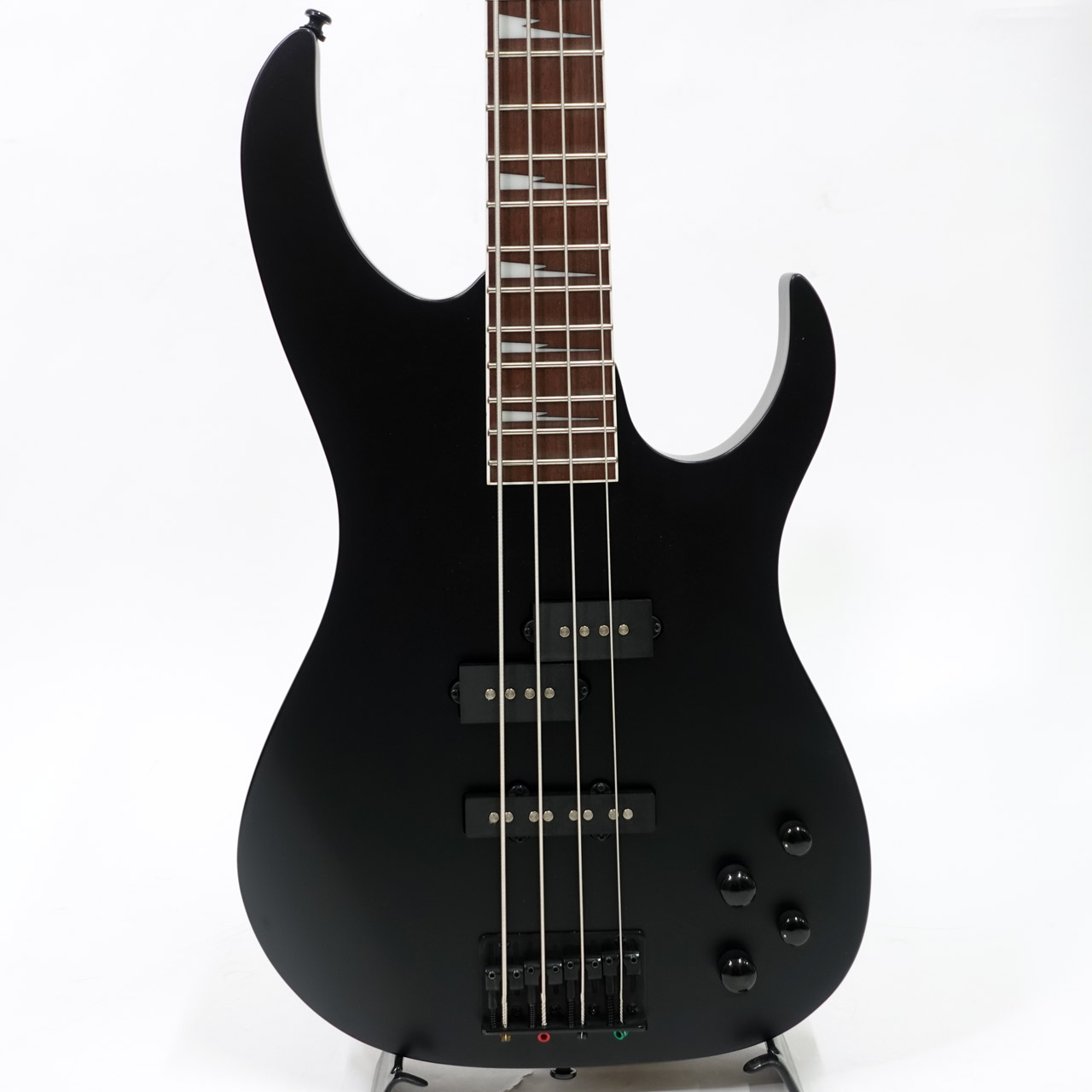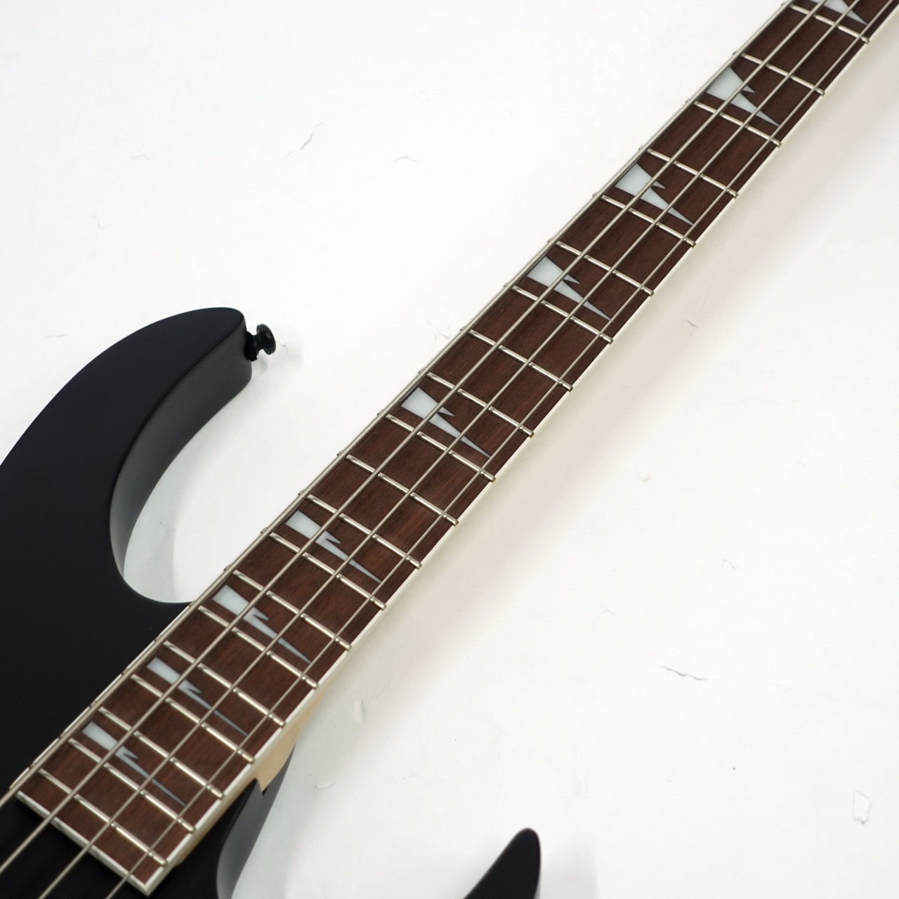シャープなシルエットにRGヘッド、そして指板のインレイ、つや消しのブラックでロックな雰囲気たっぷりに仕上がっています。