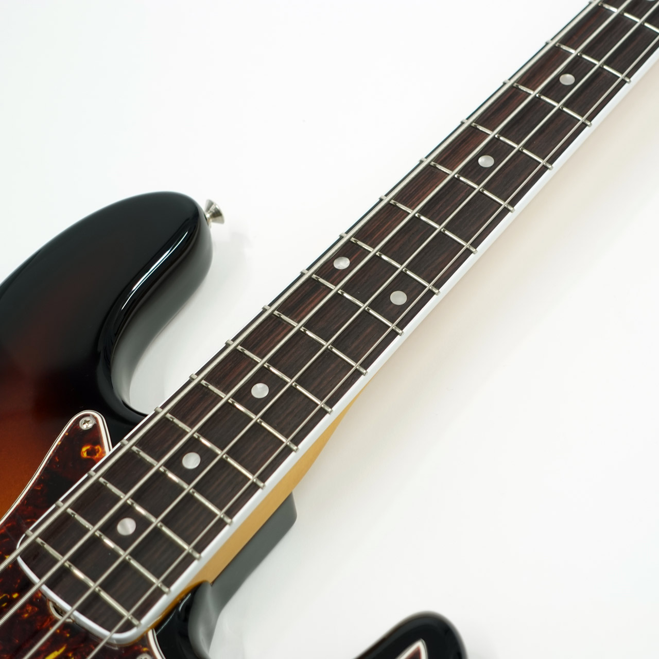 現在ではフェンダーベースの象徴的な存在となっているJazz Bassは、より洗練されたハイエンドベースモデルが欲しい、というフェンダーセールスマンのドン・ランドールの希望から誕生したモデルです。ネック幅は細くアップデートされ、より速く、より楽に演奏できるようになり、なめらかな新しいボディスタイルにはJazzmasterのオフセットコンタースタイルを採用しました。1966年、Jazz Bassは新たな機能を搭載し、さらなる進化を遂げました。