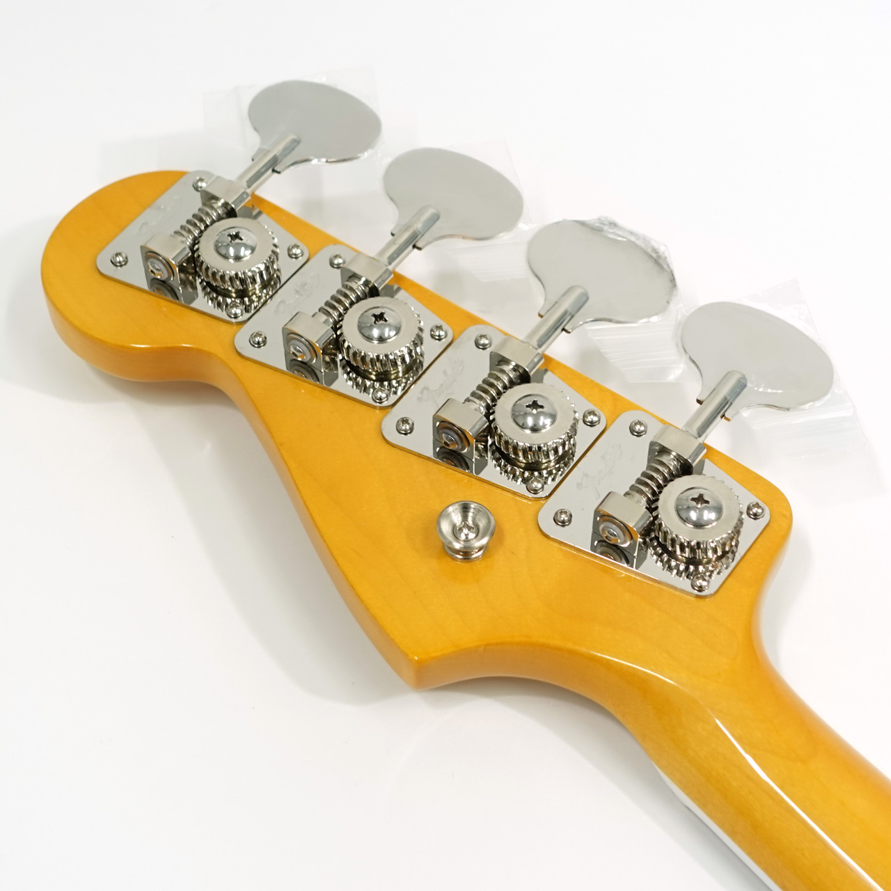 快適な1966 "U"シェイプのメイプルネックを採用したAmerican Vintage II 1966 Jazz Bassは、20本のヴィンテージトールフレットを配した7.25インチラジアスラウンドローズ指板で、まるで1966年に舞い戻ったかのような当時の楽器の演奏性を彷彿させます。ホワイトネックバインディング、パールドット、マスタートーン付き2ボリュームコントロール、4plyべっ甲柄ピックガードなど、1966 Jazz Bassならではの特徴を備えています。4サドルブリッジ、ヴィンテージスタイルロリポップチューナー、Pure Vintage '66 Jazz Bassピックアップが、クラシックなサウンドとスタイルを提供します。