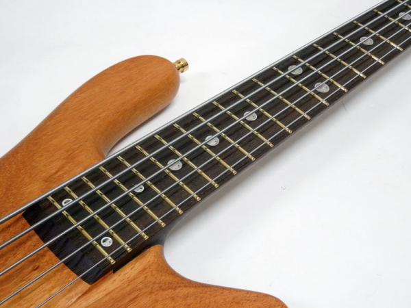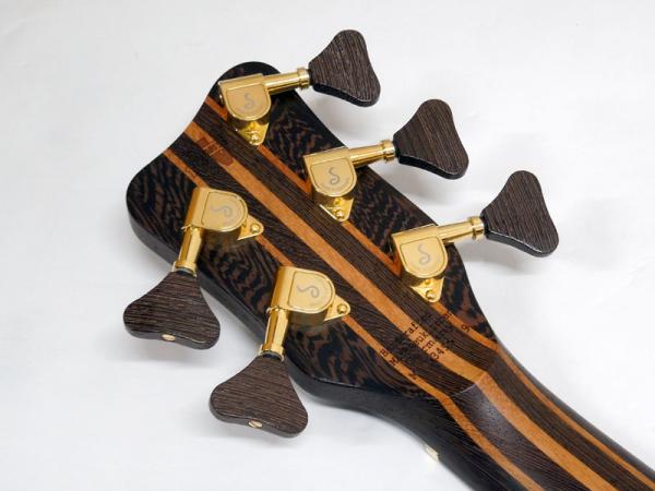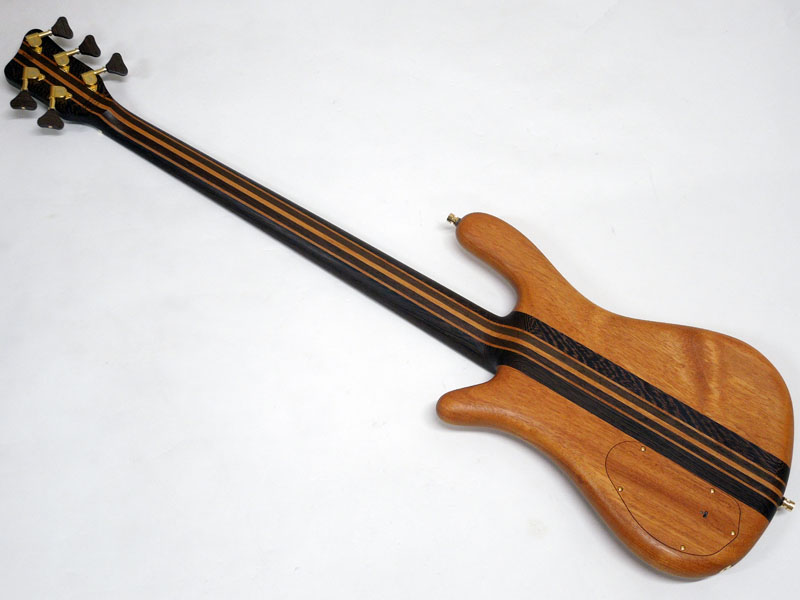 ネックは剛性、強度の高いウェンジ材とアフゼリア材を7ラミネートしたスルーネック仕様です。