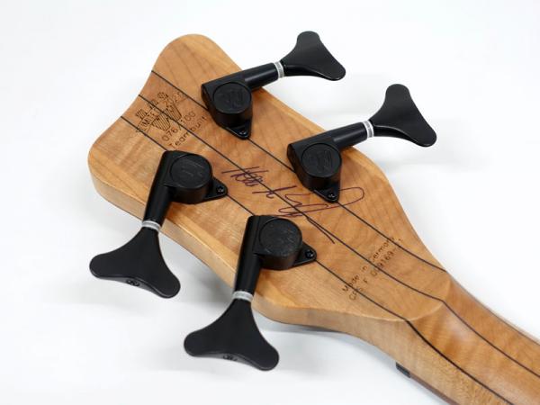 ボディ材に希少材であるブラックコリーナを贅沢に2ピースのソリッドボディで採用、墨流し杢のウッディなルックスが非常に高級感があります。ボディに合わせたマッチングヘッドにローステッド処理を施したフレイムメイプル4Pネック、パーフェロー指板。