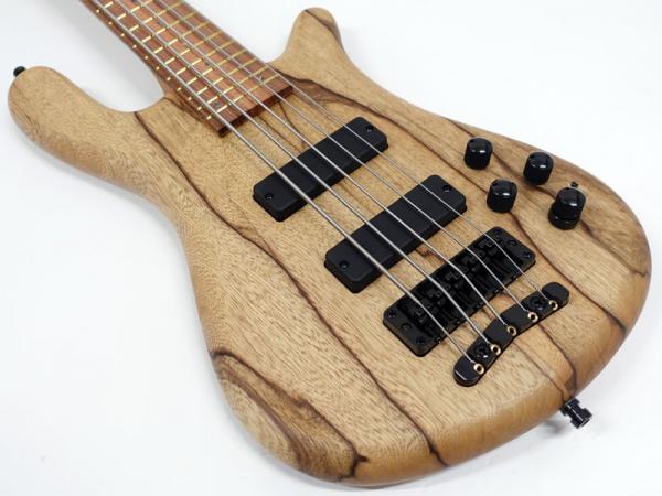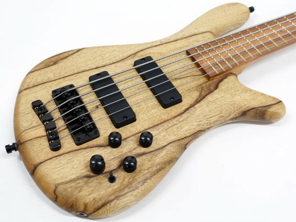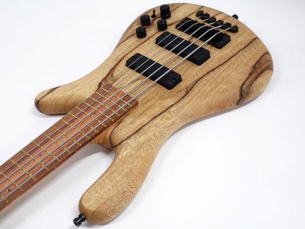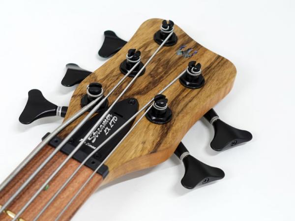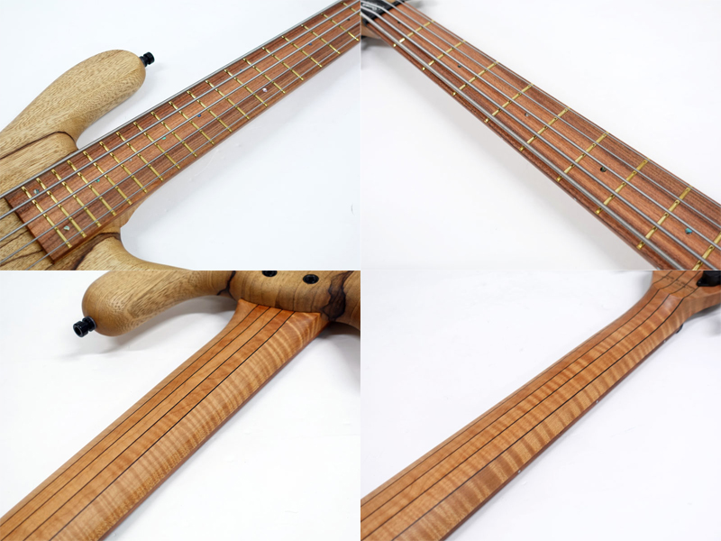 ボディ材に希少材であるブラックコリーナを贅沢に2ピースのソリッドボディで採用、墨流し杢のウッディなルックスが非常に高級感があります。ボディに合わせたマッチングヘッドにローステッド処理を施したフレイムメイプル5Pネック、パーフェロー指板。