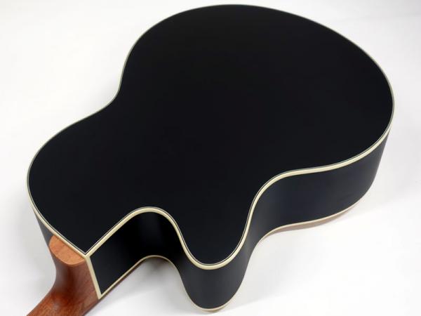 特徴的なサウンドホール形状は、ハウリングが起きにくく非常に実戦的なデザインです。