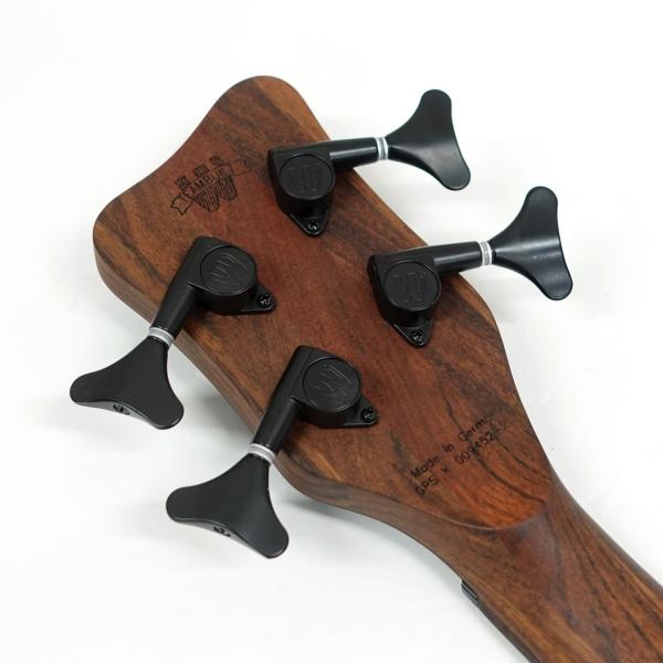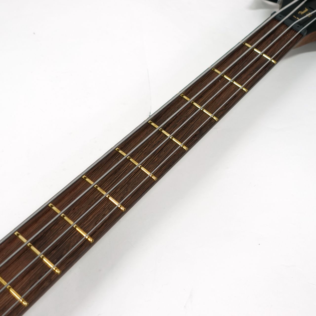 ボディ材、ネック材はオバンコール。指板材はウェンジです。カスタムショップモデルのルックスに近いブラックパーツを採用。