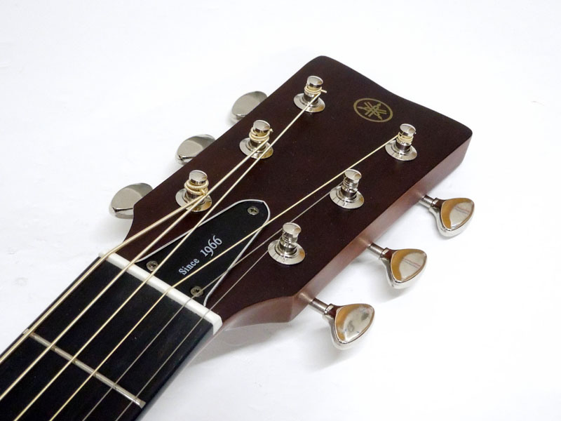 ヤマハFGのオリジナルヘッドシェイプには、音叉を型どったロゴをあしらいました。 トラスロッドカバーには、ヤマハギターの原点を示す"Since 1966"、を刻印しています。