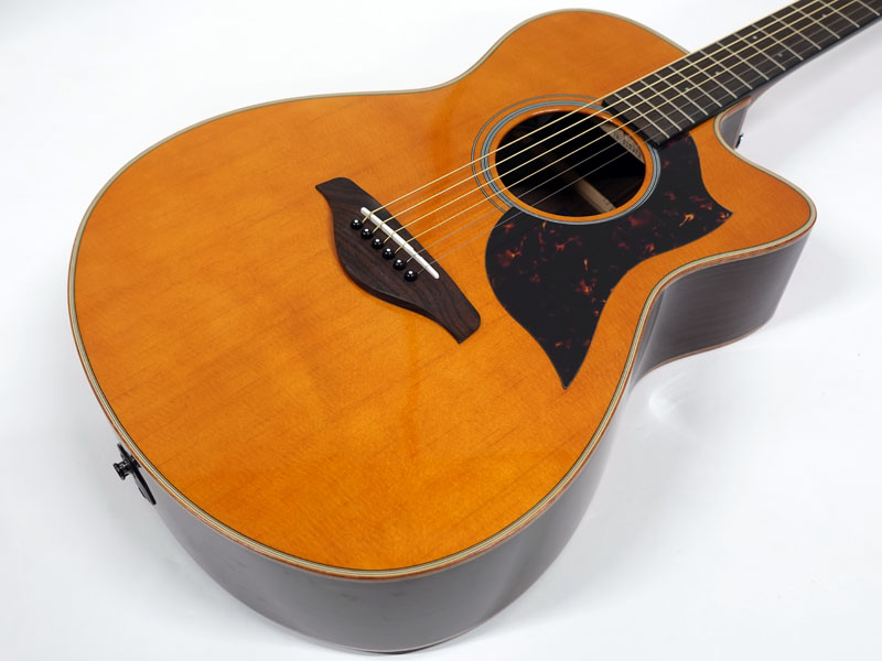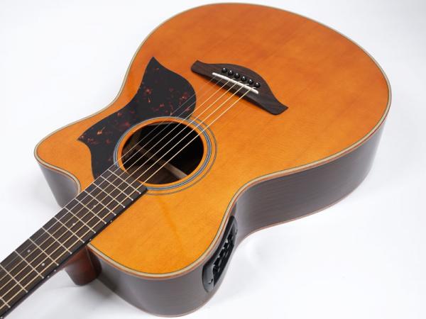こちらはAシリーズのちょっと小さめのフォークカッタウェイスタイル。トップはシトカスプルース単板でサイドバックがローズウッド仕様。