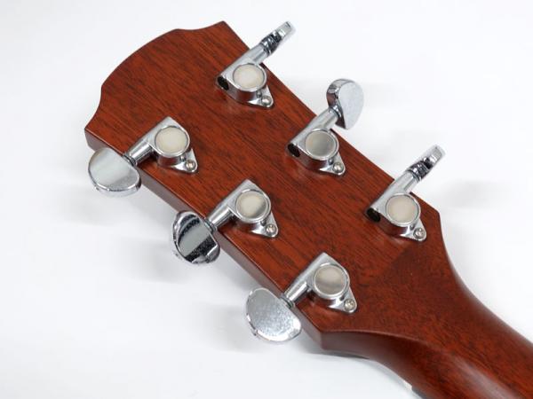 最近の主流でもあるネックは細めで弦が押さえやすく、弦高が低め、弦も細めのライトゲージを取り入れ初心者の方でもエレキからの持ち替えにも違和感なく弾ける演奏性を実現。
