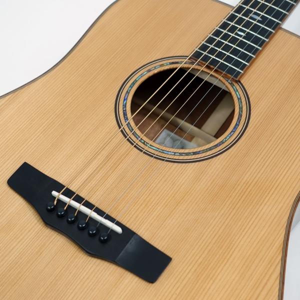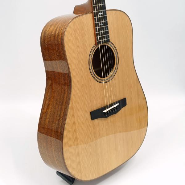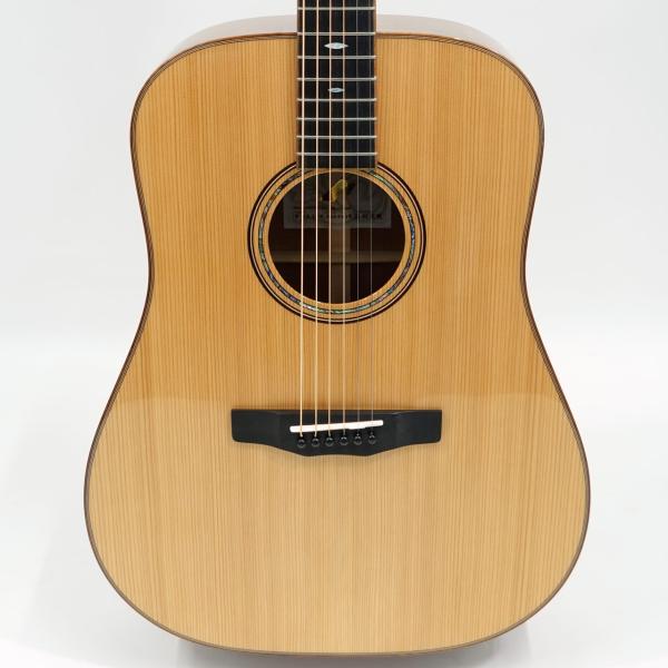Japan Forestシリーズのこのモデル、宮崎県産の地杉(ジスギ)とアフリカンマホガニーの組み合わせによる特別仕様。煌びやかな高音と柔らかな中域をもつ地杉とマホガニーの組み合わせにより、全体を包み込むようなまろやかで優しい音色が特徴です。