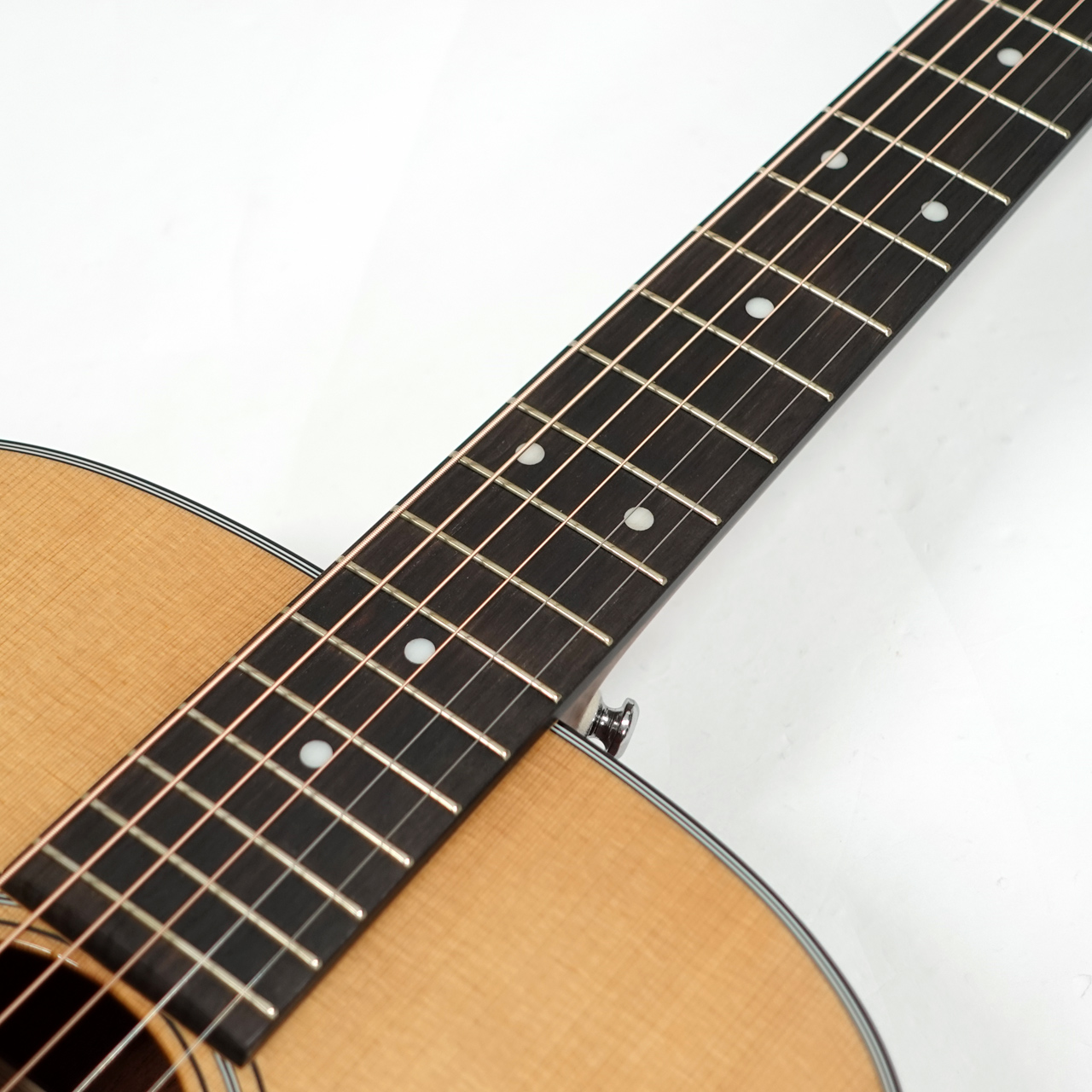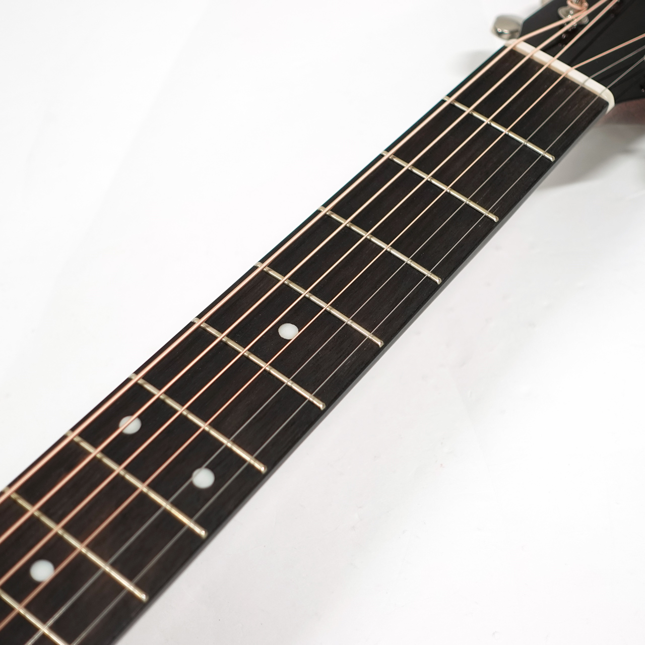 アコースティックギターの演奏で頻繁に使われるローコード。コード変更がスムーズに出来るように、ナットの角を滑らかに処理しました。また同じくサドルの角を滑らかにすることにより、ブリッジミュート時など右手が触れるときの感触も向上しました。