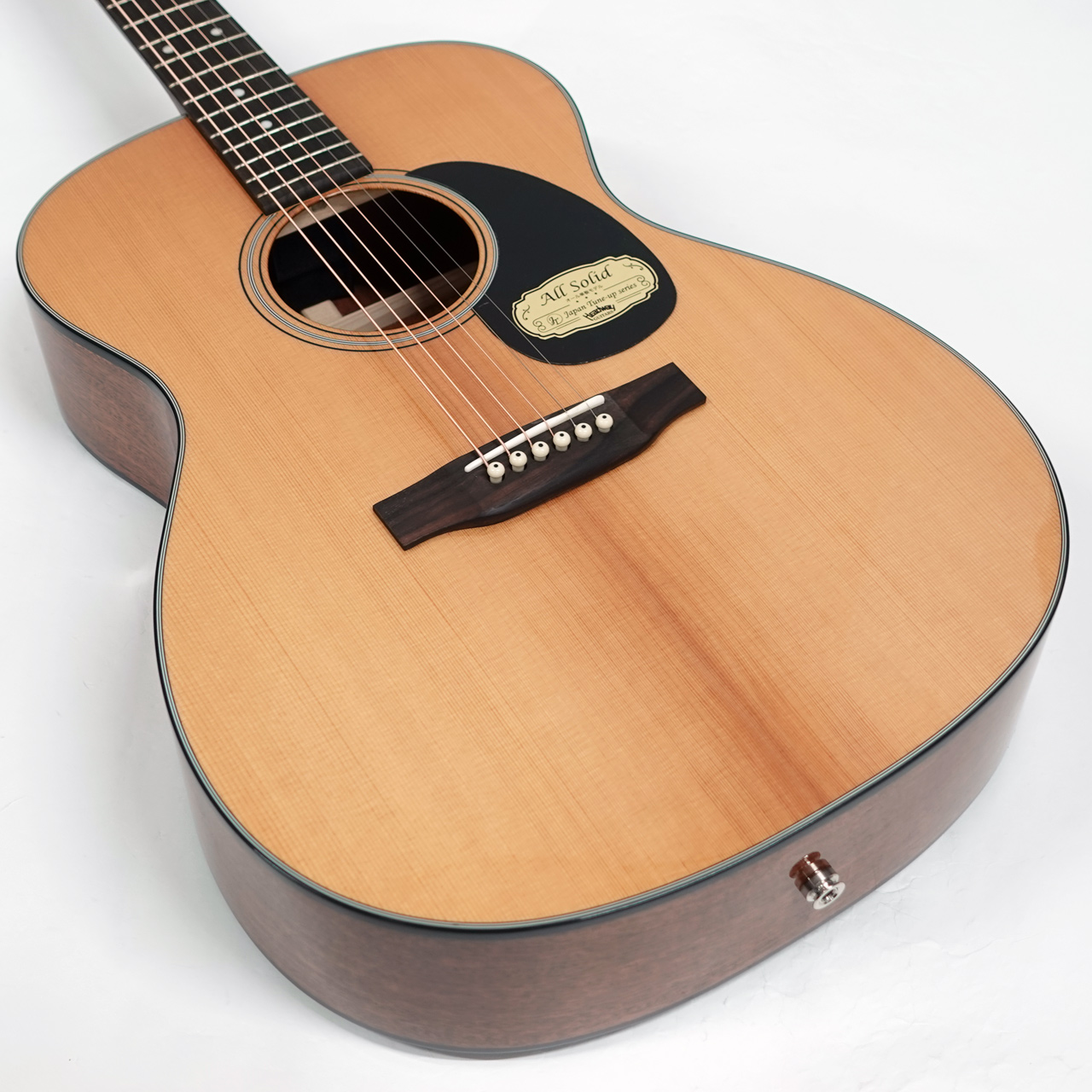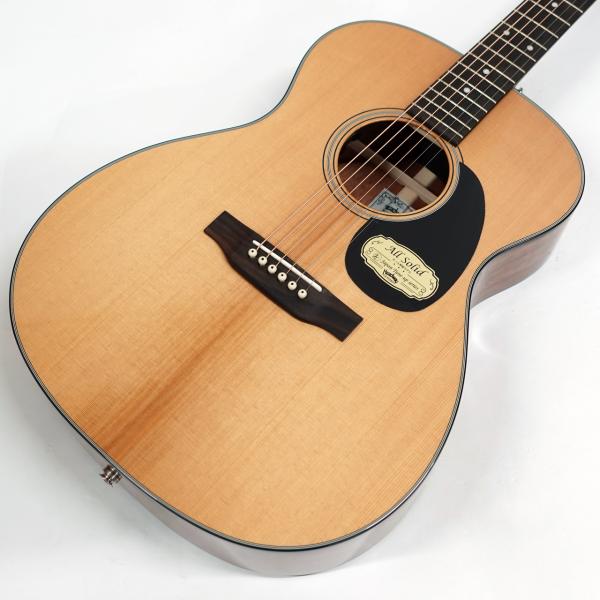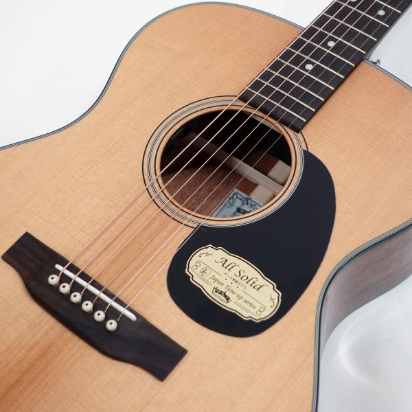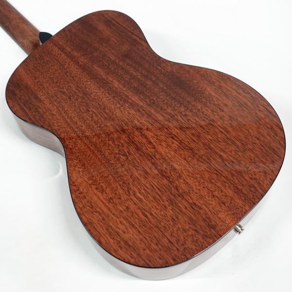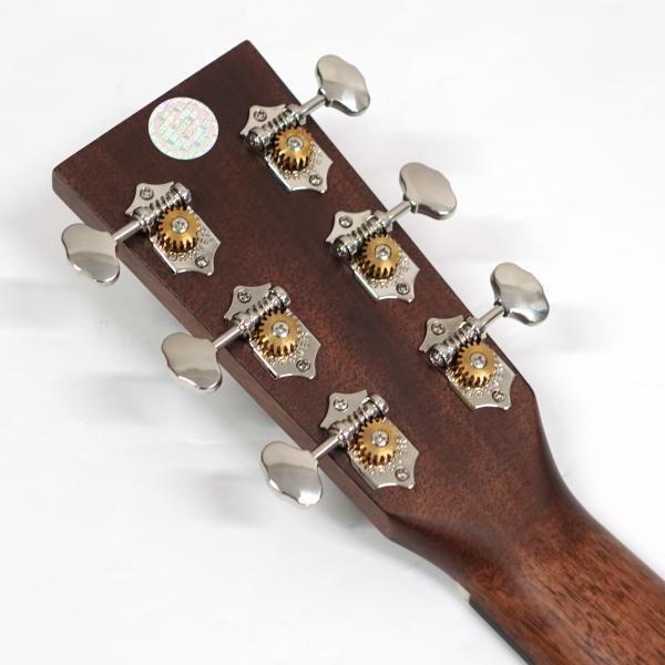 ボディトップはスプルース単板、ボディサイドバックはアフリカンマホガニー単板となっております。オール単板であるため、合板のギターと比べて木材の振動が豊かになり、より本格的なアコーステックサウンドを楽しめます。