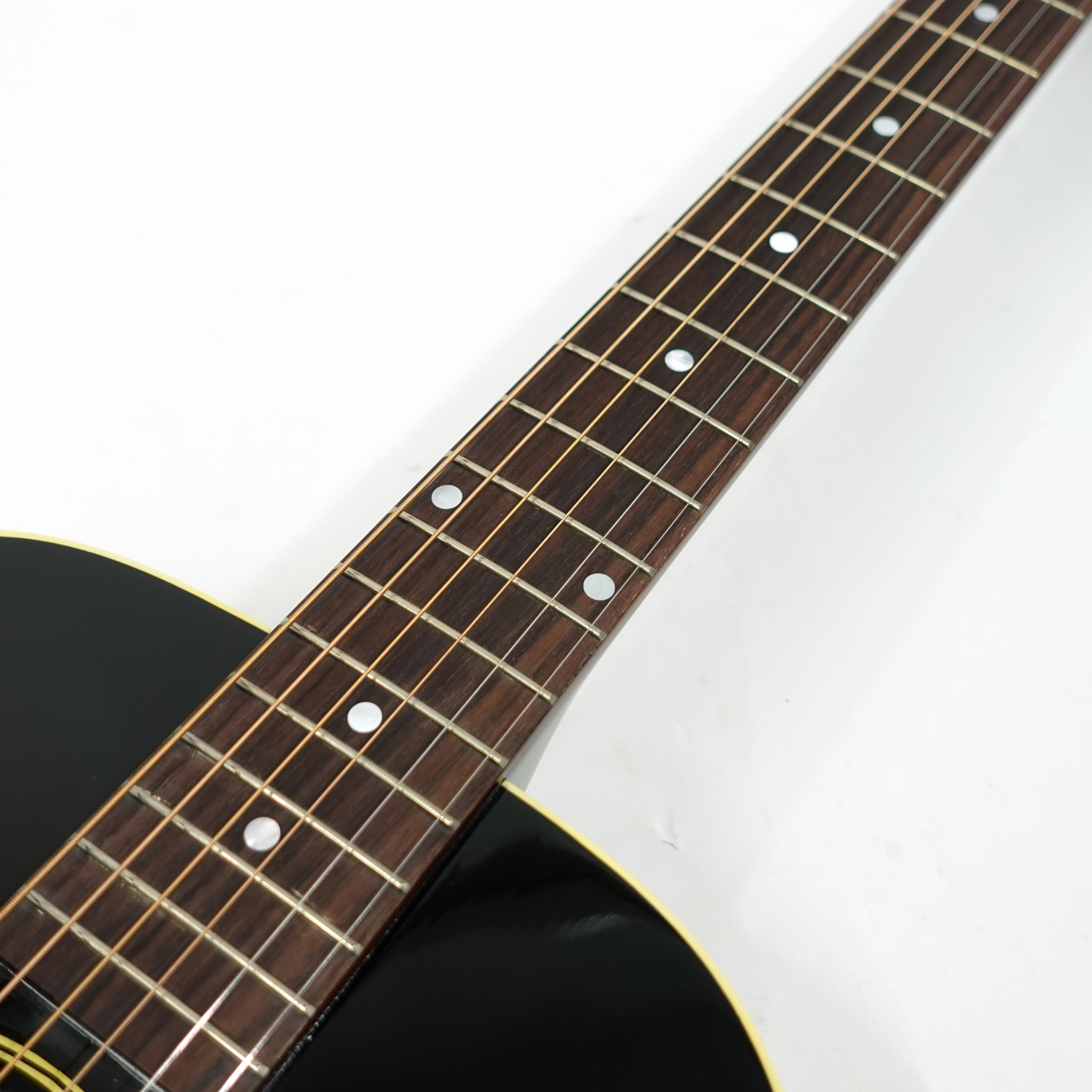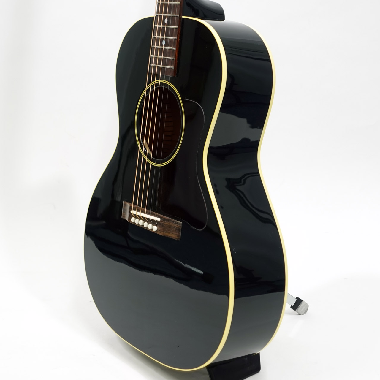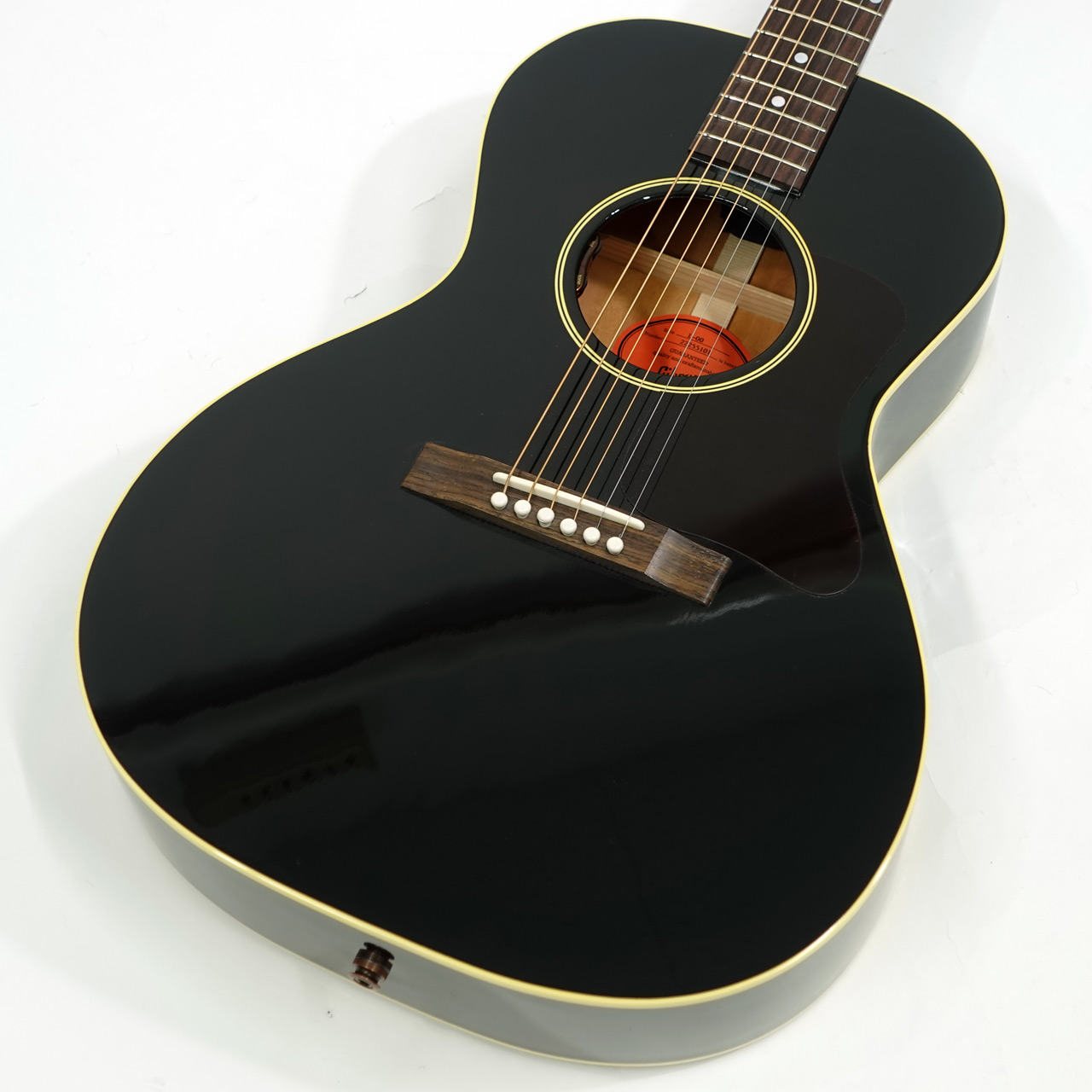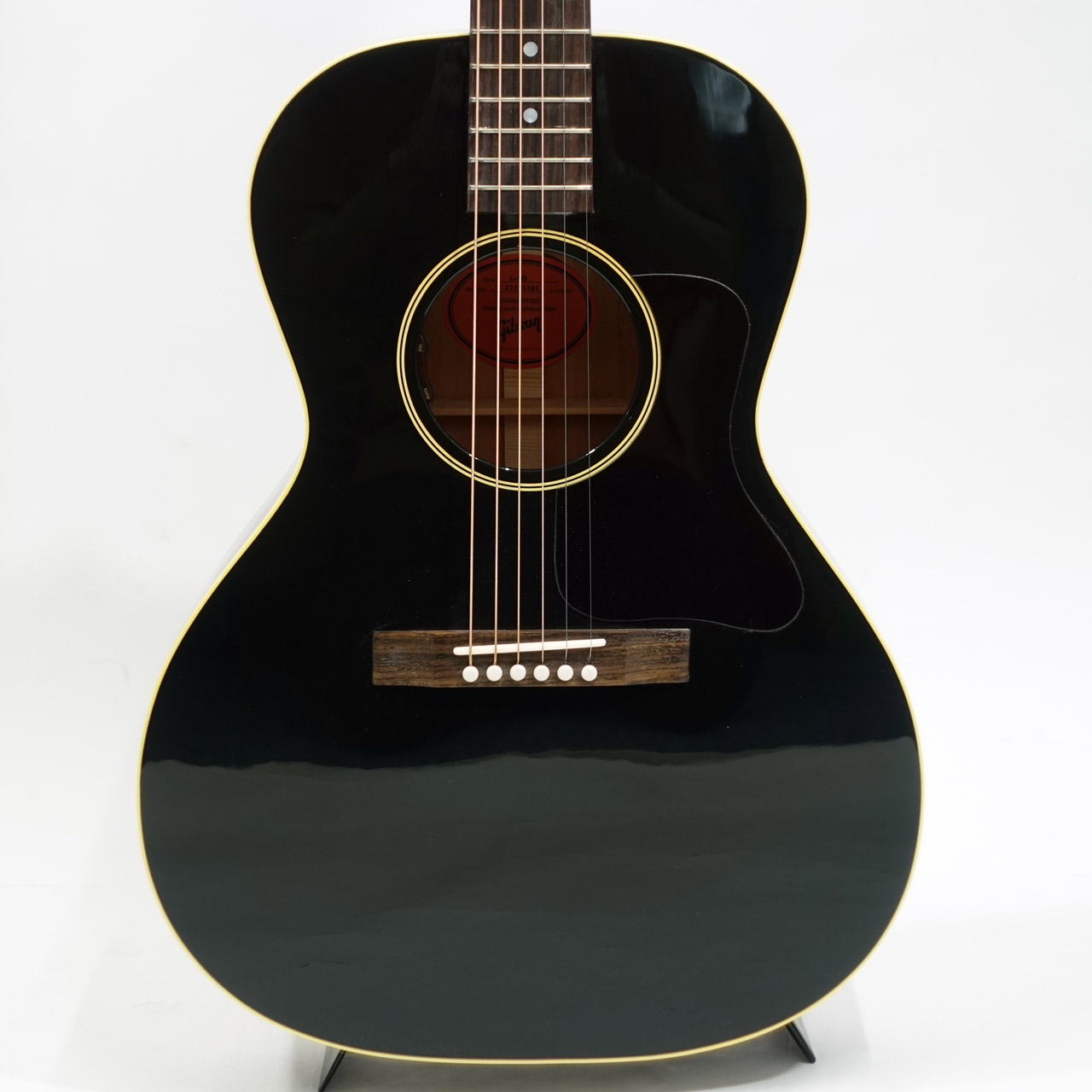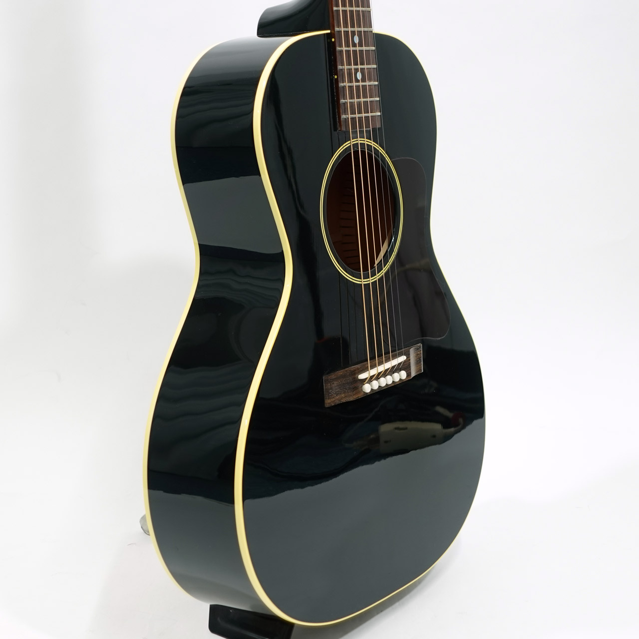 本器は人気の高いL-00のエボニーカラー。1932年から1946年に製造されたL-00は、非常にバランスの取れたスモールボディのお手本のような存在で、主にブルーズ系ギタリストから多くのフォロワーを獲得してきました。
