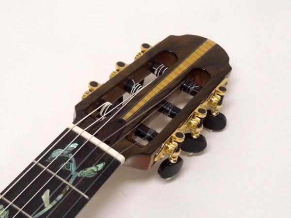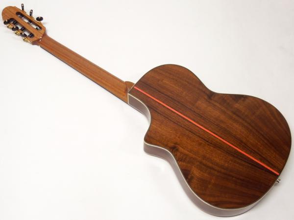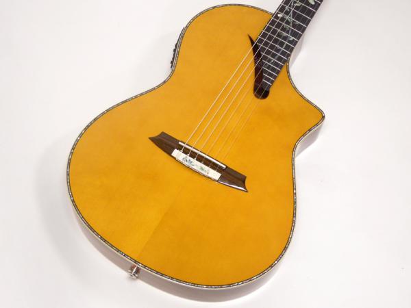 ナット幅は48mmと一般的なガットギターより少し細く、シェイプもかなり薄めのため、ガットギター特有の丸みを帯びたネックシェイプが苦手な方でも弾きやすく、持ち替えもスムーズです。