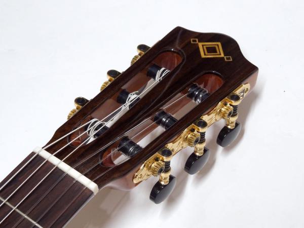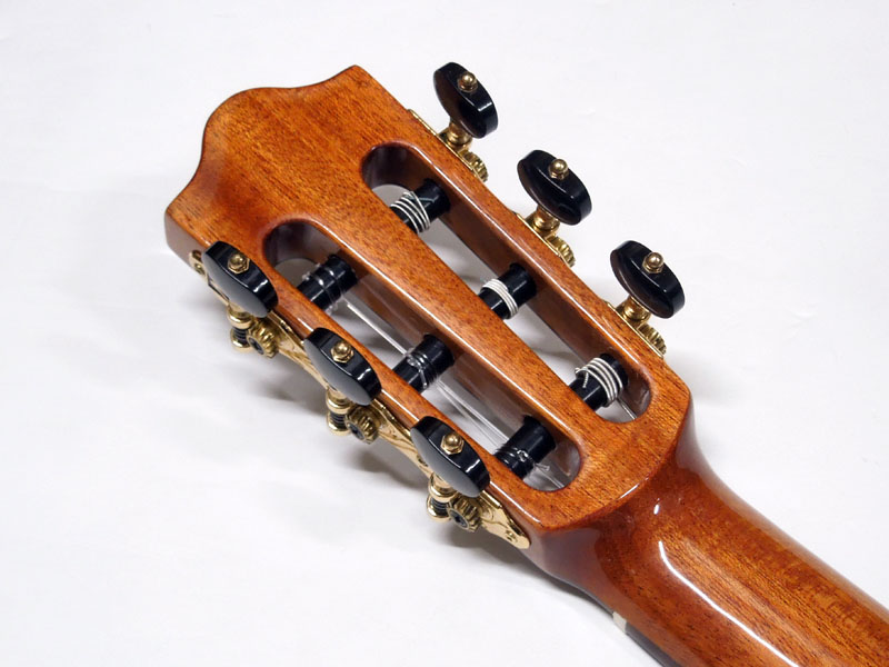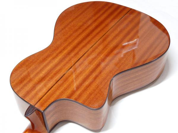 ナット幅は48mmと一般的なガットギターより少し細く、シェイプもかなり薄めのため、ガットギター特有の丸みを帯びたネックシェイプが苦手な方でも弾きやすく、持ち替えもスムーズです。