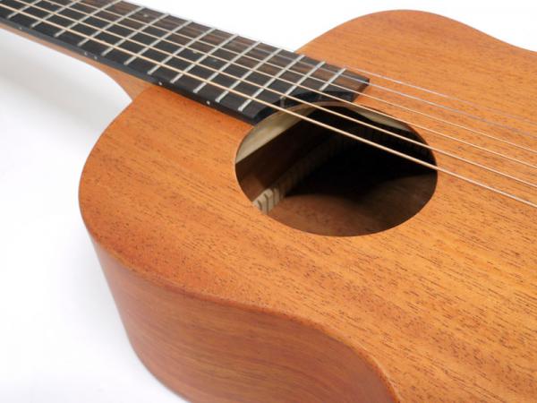 上位のモデルには劣りますがこの価格帯のミニギターとしては十分な生鳴り、ミニギターとしては珍しいカッタウェイ仕様となっておりますので、フィンガースタイルのお客様にも人気です。