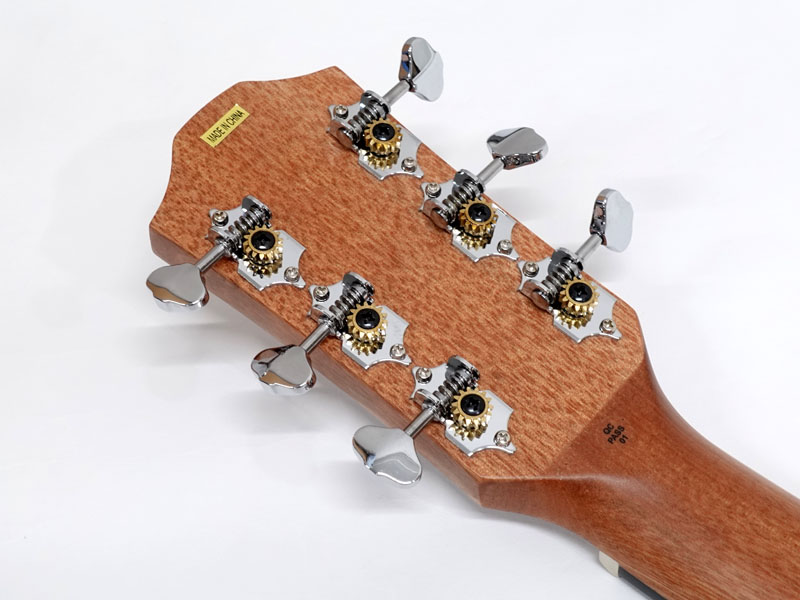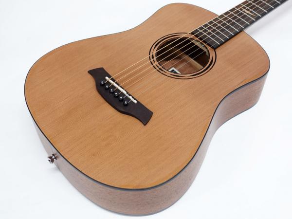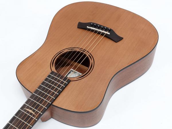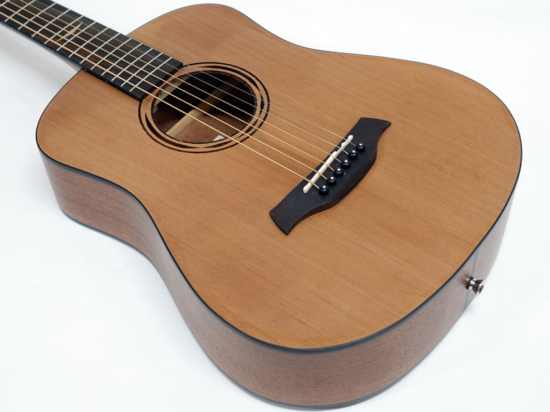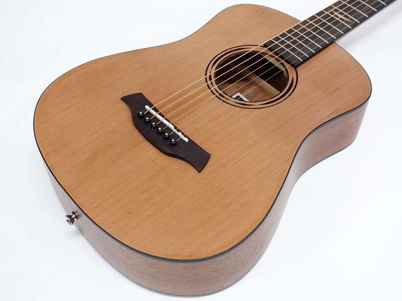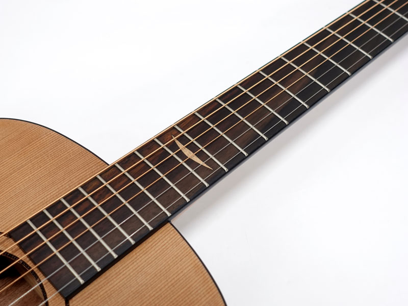 カナディアンシダー単板トップ、マホガニーサイド&バック、マホガニーネック、オバンコール指板&駒。弾きやすい薄めのネックに43mmナット幅でフィンガースタイルでも弾きやすいプレイアビリティを持ちます。軽快な箱鳴り感は価格以上のクオリティが感じられます。