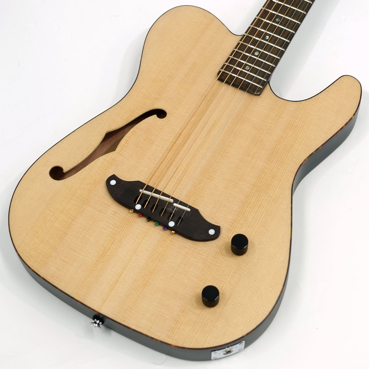 新たにブリッジ下に埋め込まれたパッシブピックアップを搭載、ボディトップにノブを搭載したテレらしいルックスになりました。