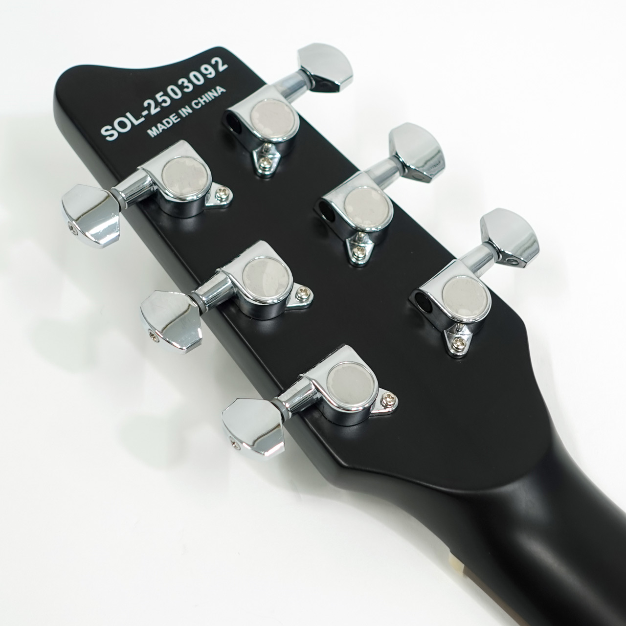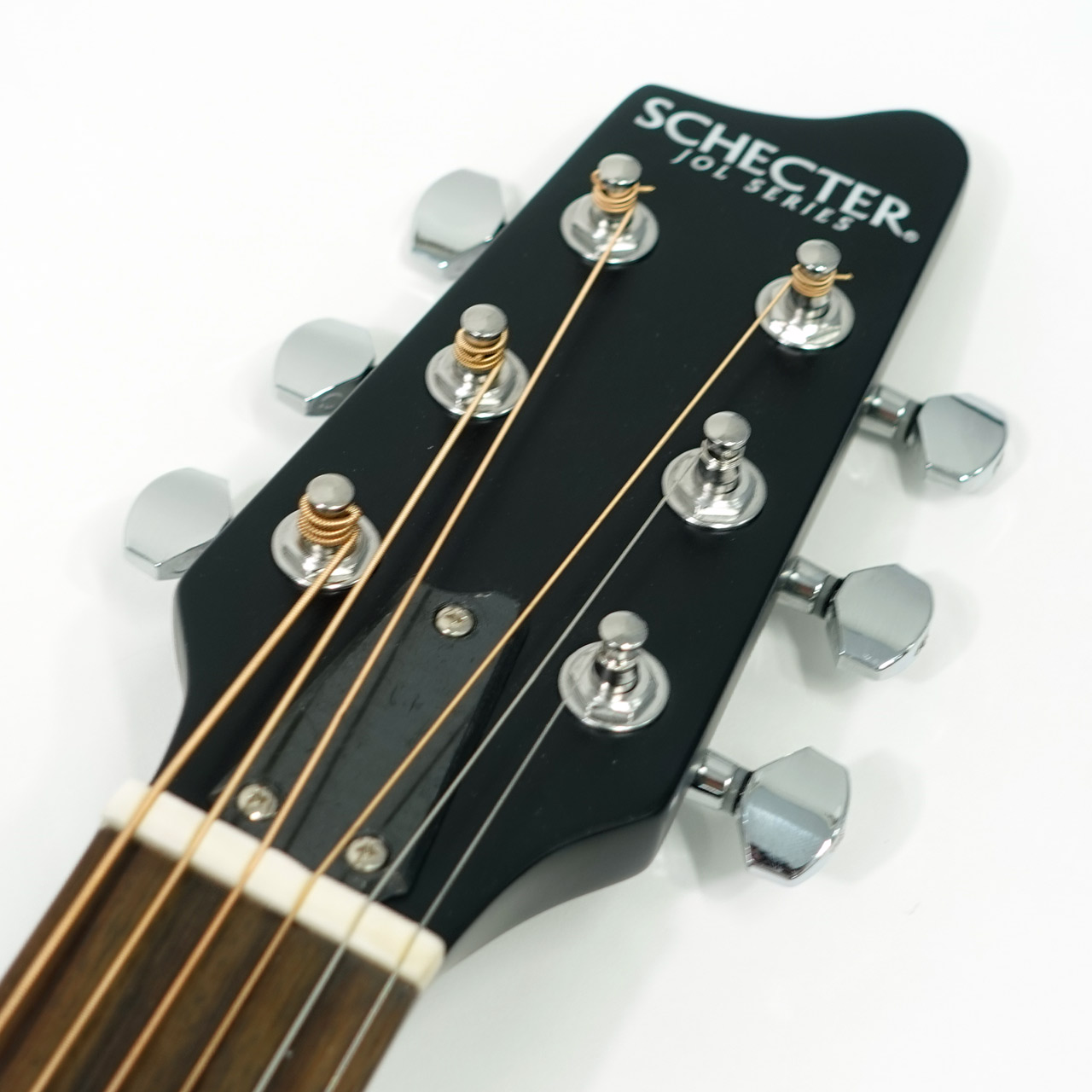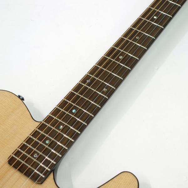 シェクター仕込みのヒールレスセットネックジョイントでハイフレットまでエレキ同様のスムーズさ。指板とブリッジにはローズウッドを採用して、スルーブリッジ仕様となります。