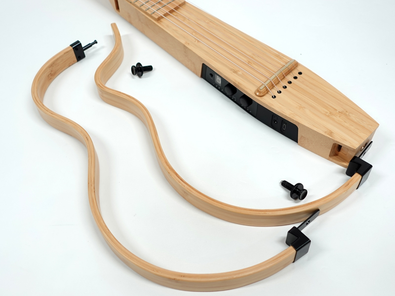 ネックからボディフレームまで、すべて竹でできた先進のギター。フレームを外せばコンパクトに持ち運び可能。アンプに繋げば、リアルなアコースティックサウンド、加えてリバーブやディレイなどエフェクターを内蔵。しかもワイヤレスで、アンプと接続可能。Bluetoothでスマホとも連携し、さらに奥深い機能もスマホからコントロールできる。ナターシャが送り出す最新のスマートギター。