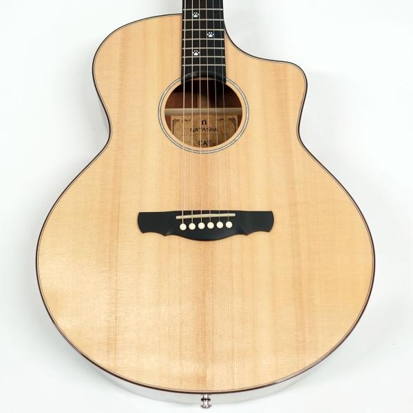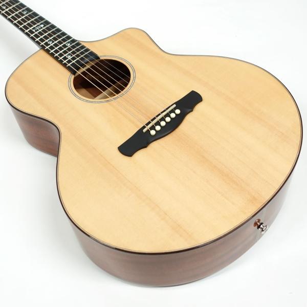 そのクオリティは厳選されたトップ材とフレット周りの仕上がりを見れば一目瞭然。サイドバック材は合板仕様ですがとても音抜けは良く、演奏フィーリングは1ランクも2ランクも上位のモデルを弾いているかのような気持ち良さが有ります。