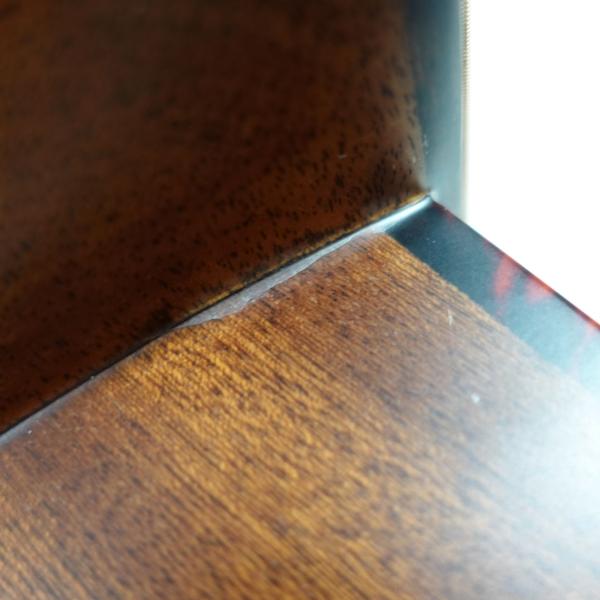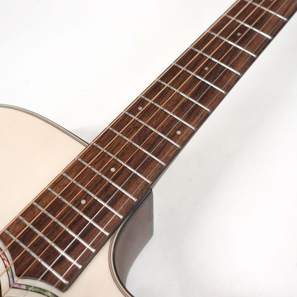 ボディ・トップは板材の時に真空状態で熱を加えることで余分な水分やミネラルを取り除いたソリッド・シトカ・スプルースを、サイドとバックにはサペリを採用しています。