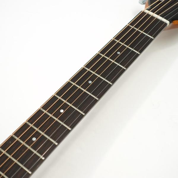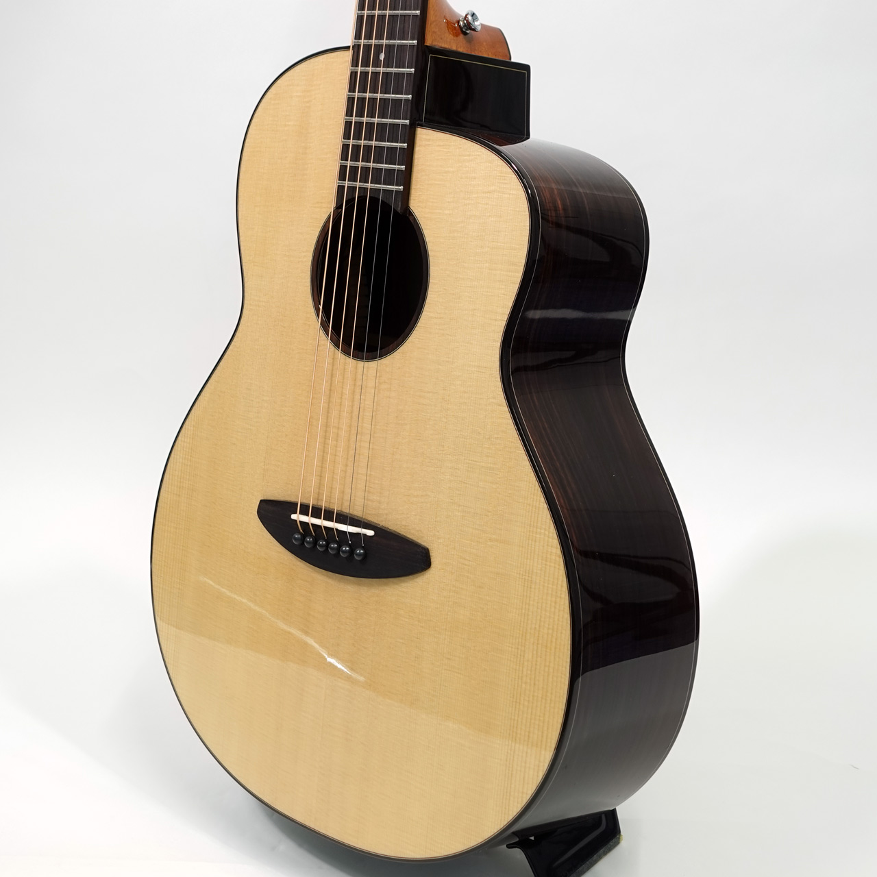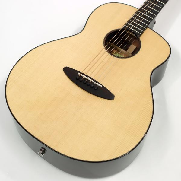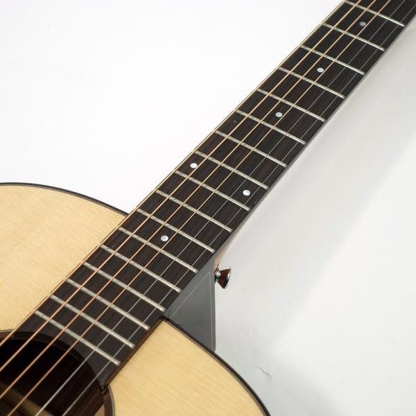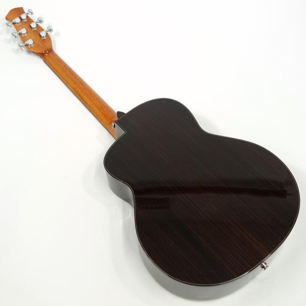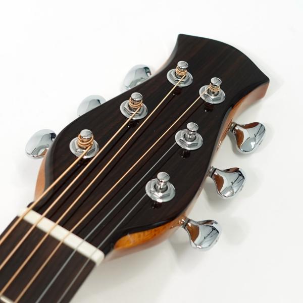 スペックはオーソドックスなスプルース単板トップ、ローズウッド材サイド&バック、マホガニー材ネック、ローズウッド材指板&駒、牛骨ナット&サドル、44mmナット幅、650mmスケール、グロス・ボディ&グロス・ネック、Air Blueピックアップ搭載となっております。ロゴなしのヘッドは杉田健司氏デザインのハンドカットヘッドストックを採用し、この価格帯とは思えないハイエンドギターのような高級感があります。
