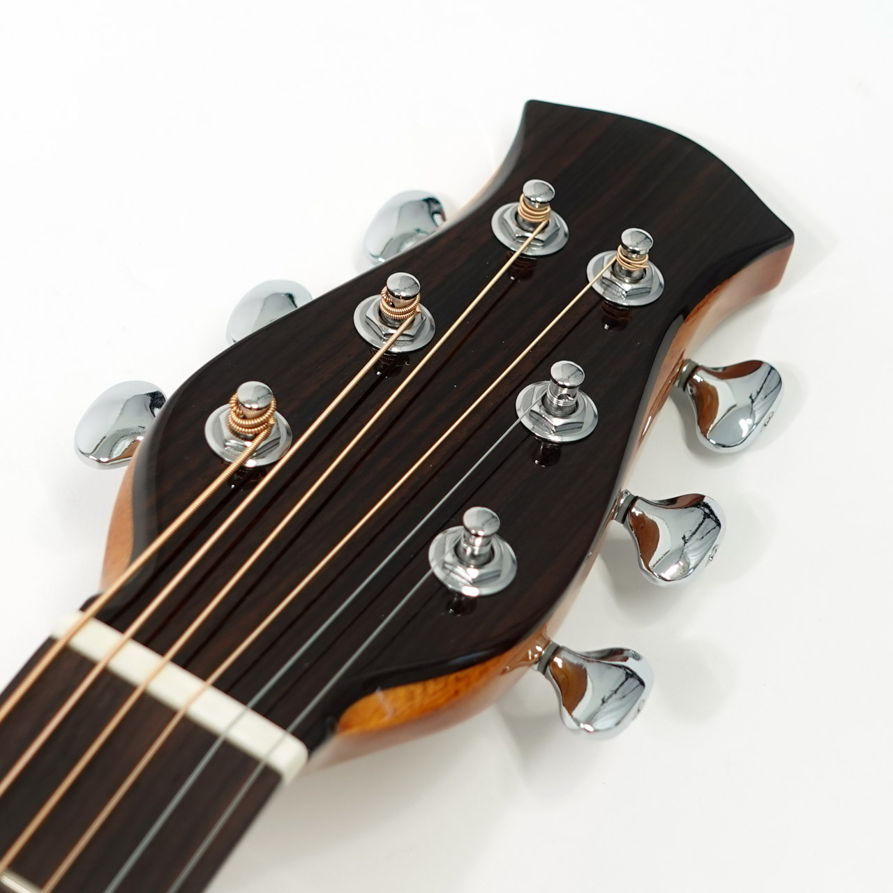 各弦の輪郭、バランスがしっかりしており、フィンガースタイルのお客様にもともと人気だったBirdguitarですが、杉田氏によってブレーシングデザインが一新されたことで、全体的共鳴が更に協和するようになり、音を保つこと(テヌート)に関して更に繊細な表現ができ、音色質感が更にグレードアップしております。