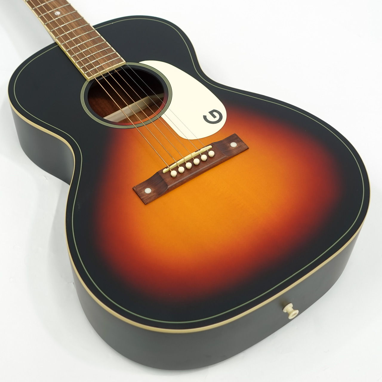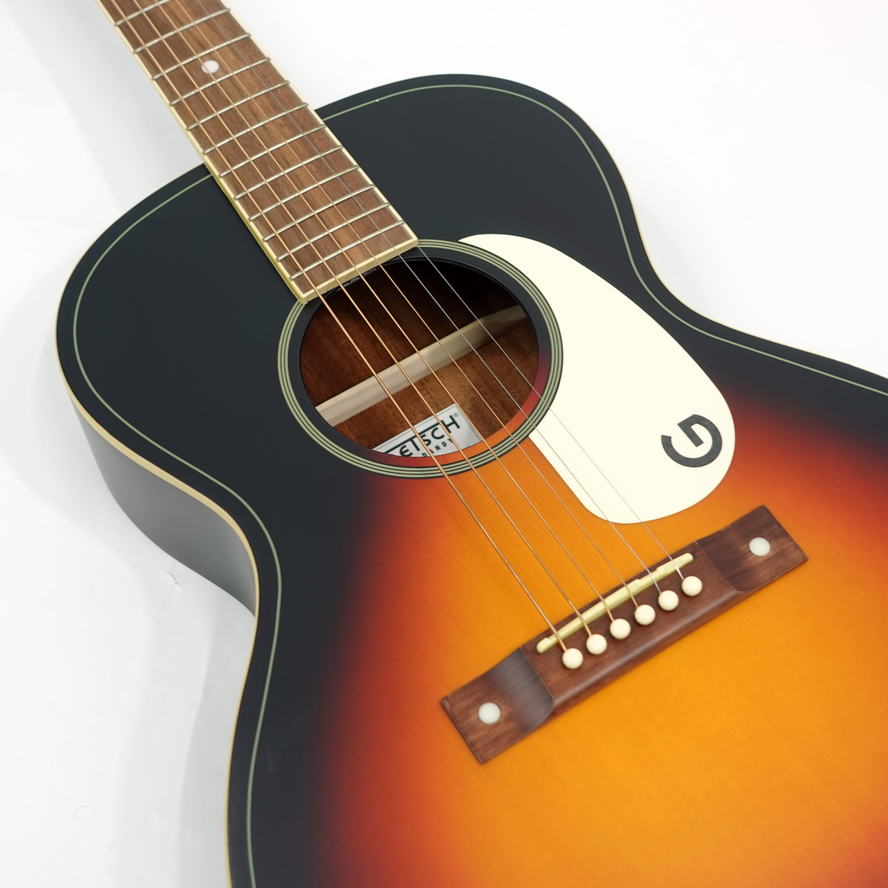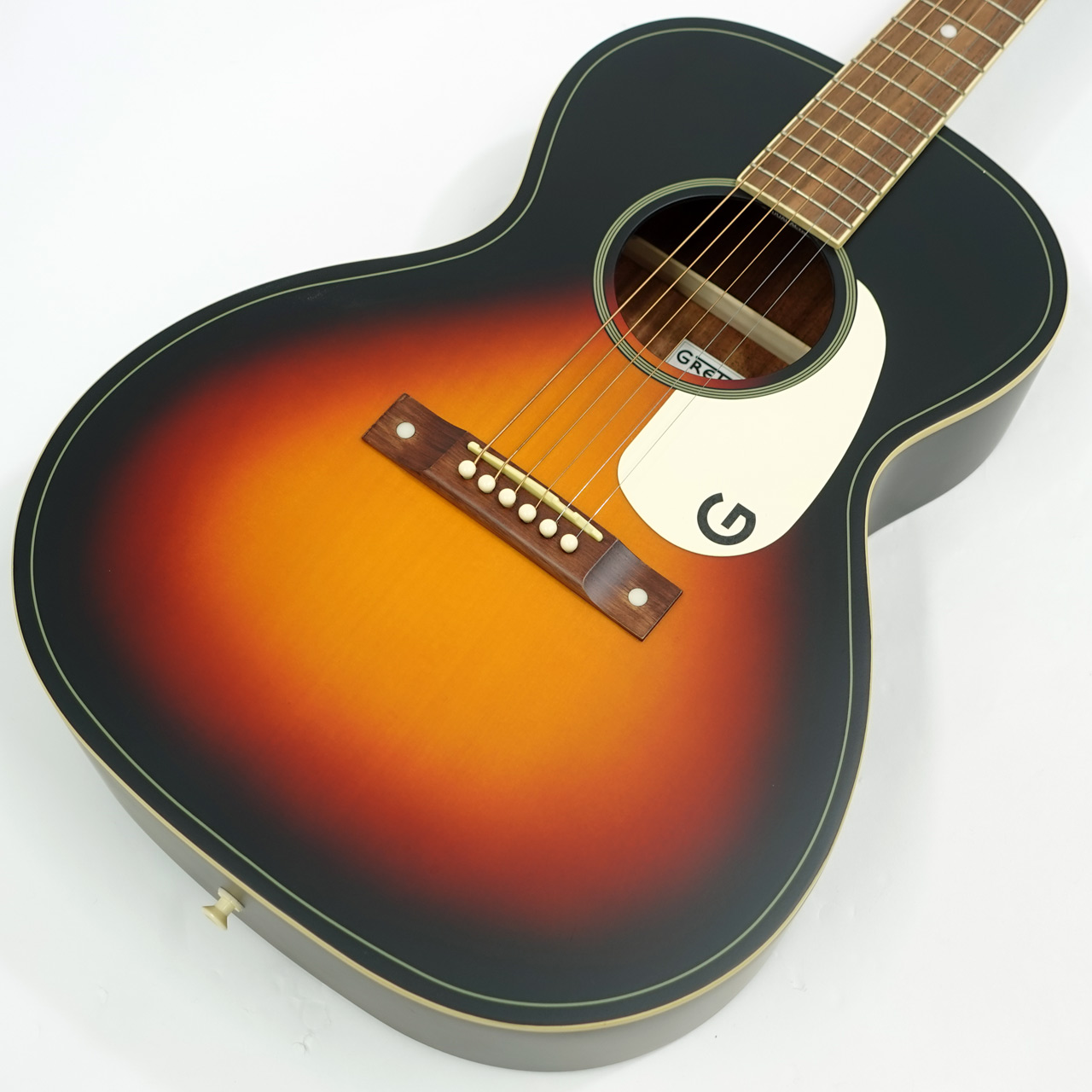 1930~50年代のグレッチ・アコースティックギターを元に再現。ピックガードのGマークがかっこいい一本です。