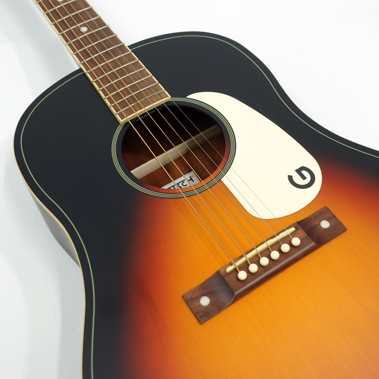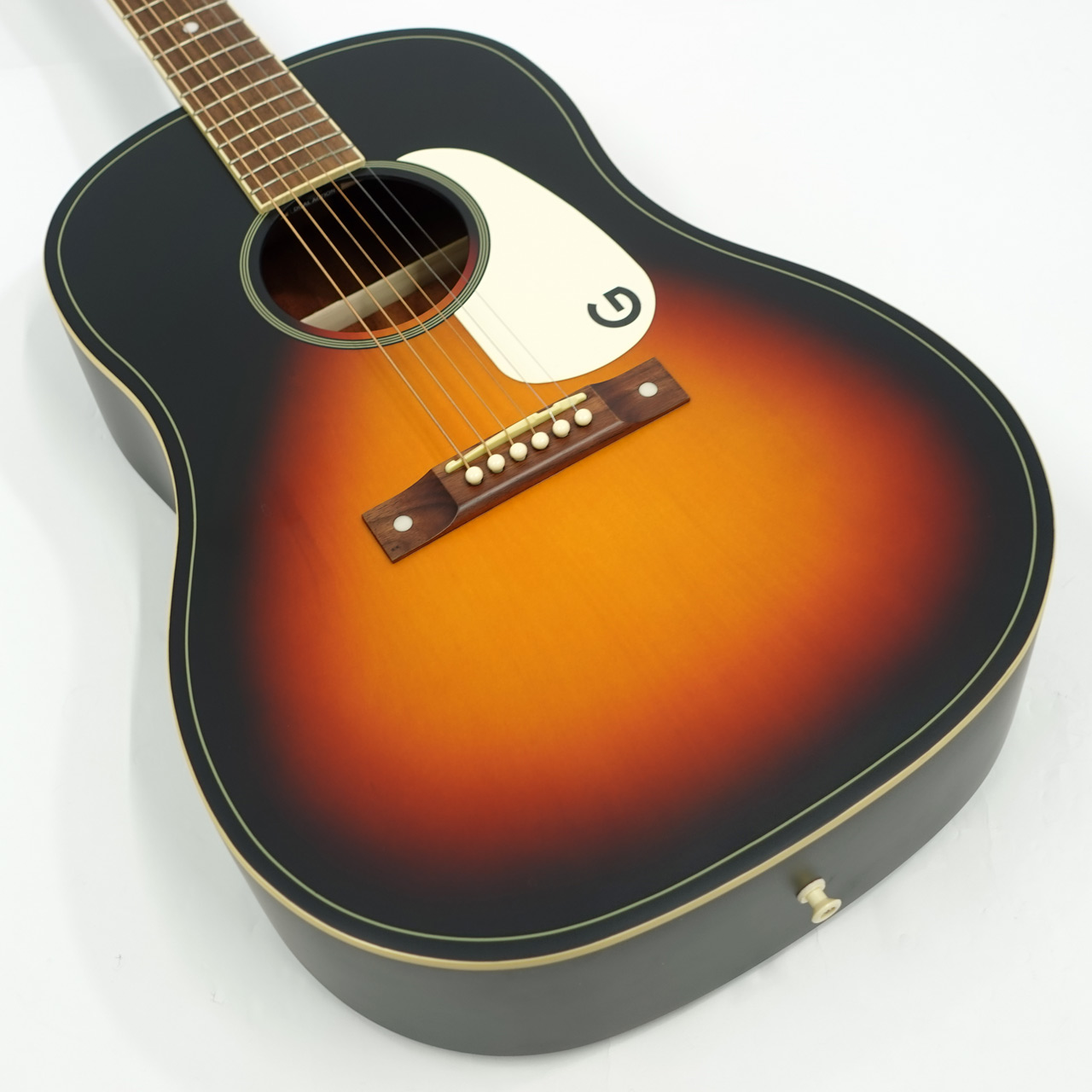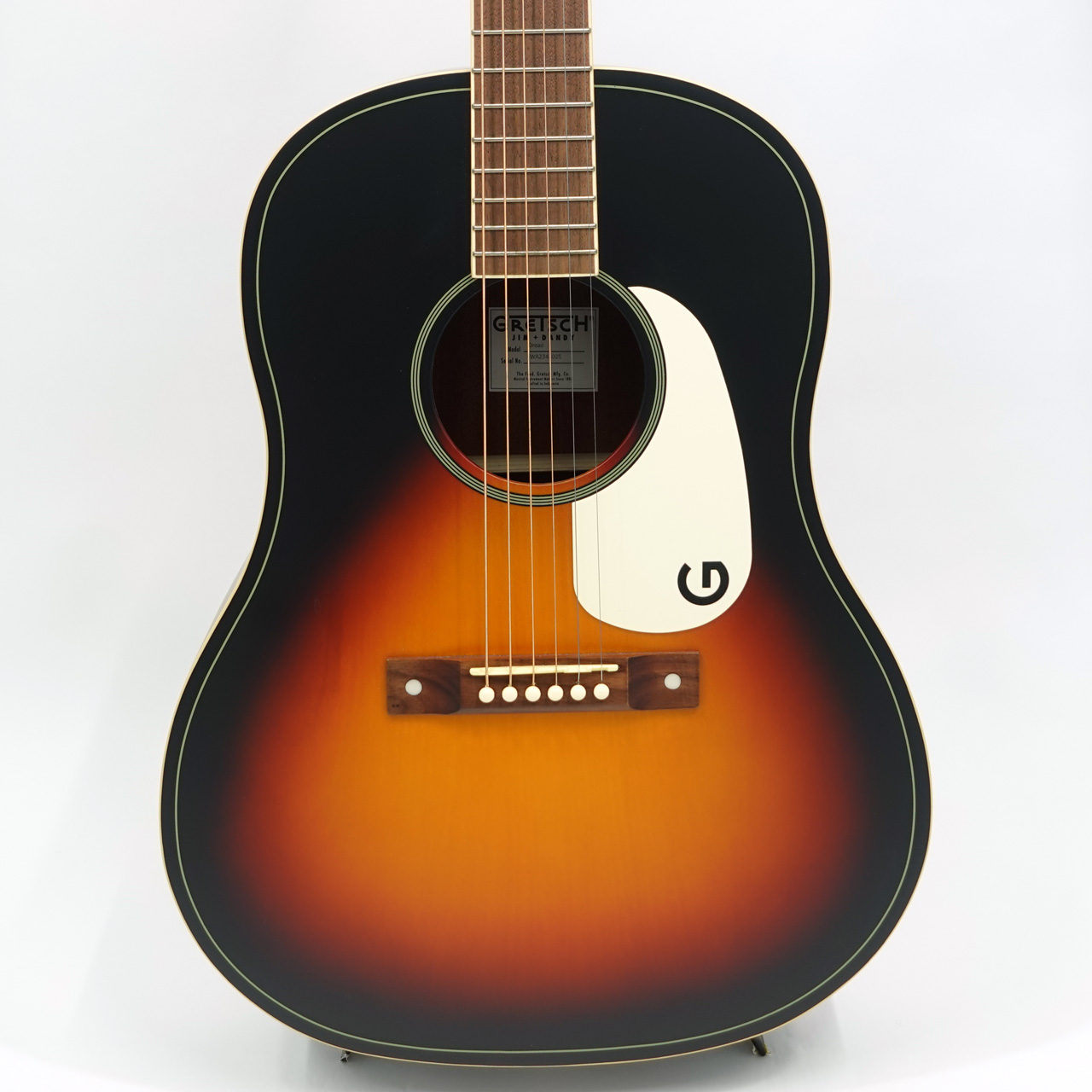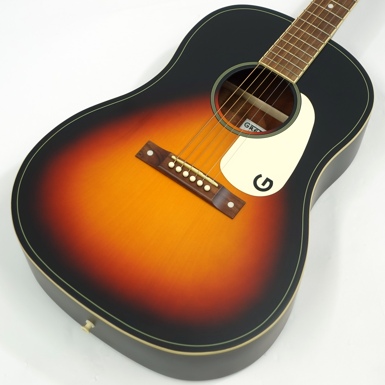 1930~50年代のグレッチ・アコースティックギターを元に再現。ピックガードのGマークがかっこいい一本です。