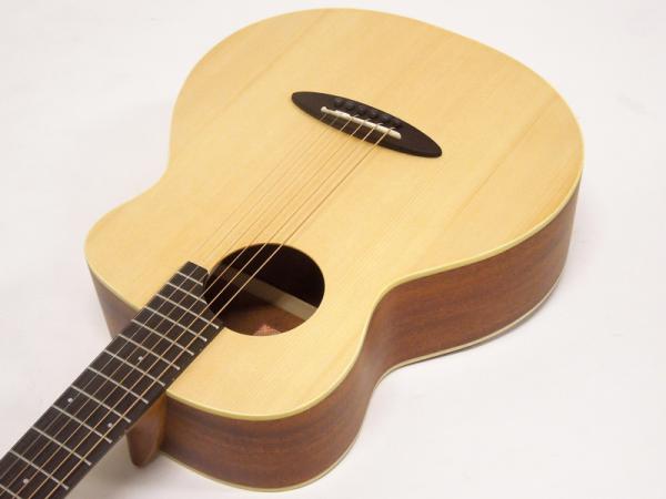 上位のモデルには劣りますがこの価格帯のミニギターとしては十分な生鳴り、ミニギターとしては珍しいカッタウェイ仕様となっておりますので、フィンガースタイルのお客様にも人気です。