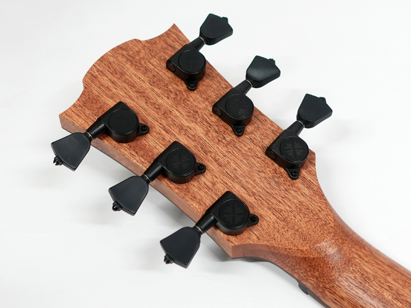 ピックガードやポジションマークなしのシンプルなルックスにウッディなサウンドホールや立体的なヘッドデザイン、フランスならでは?のこだわりのデザインですネ。
