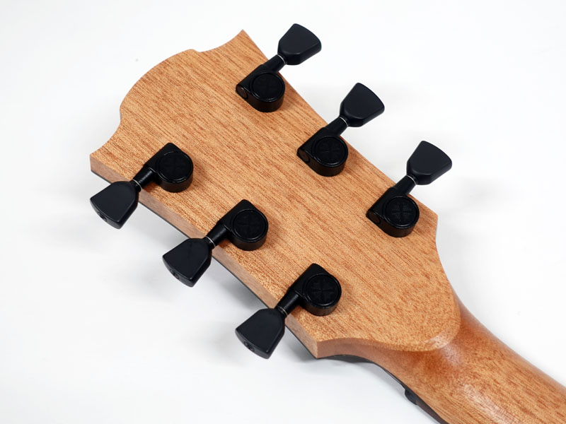 バインディングなしですが上位モデル同様丸みのあるボディエッジ処理で抱えた時のほっこり感に心配りを感じさせてくれます。