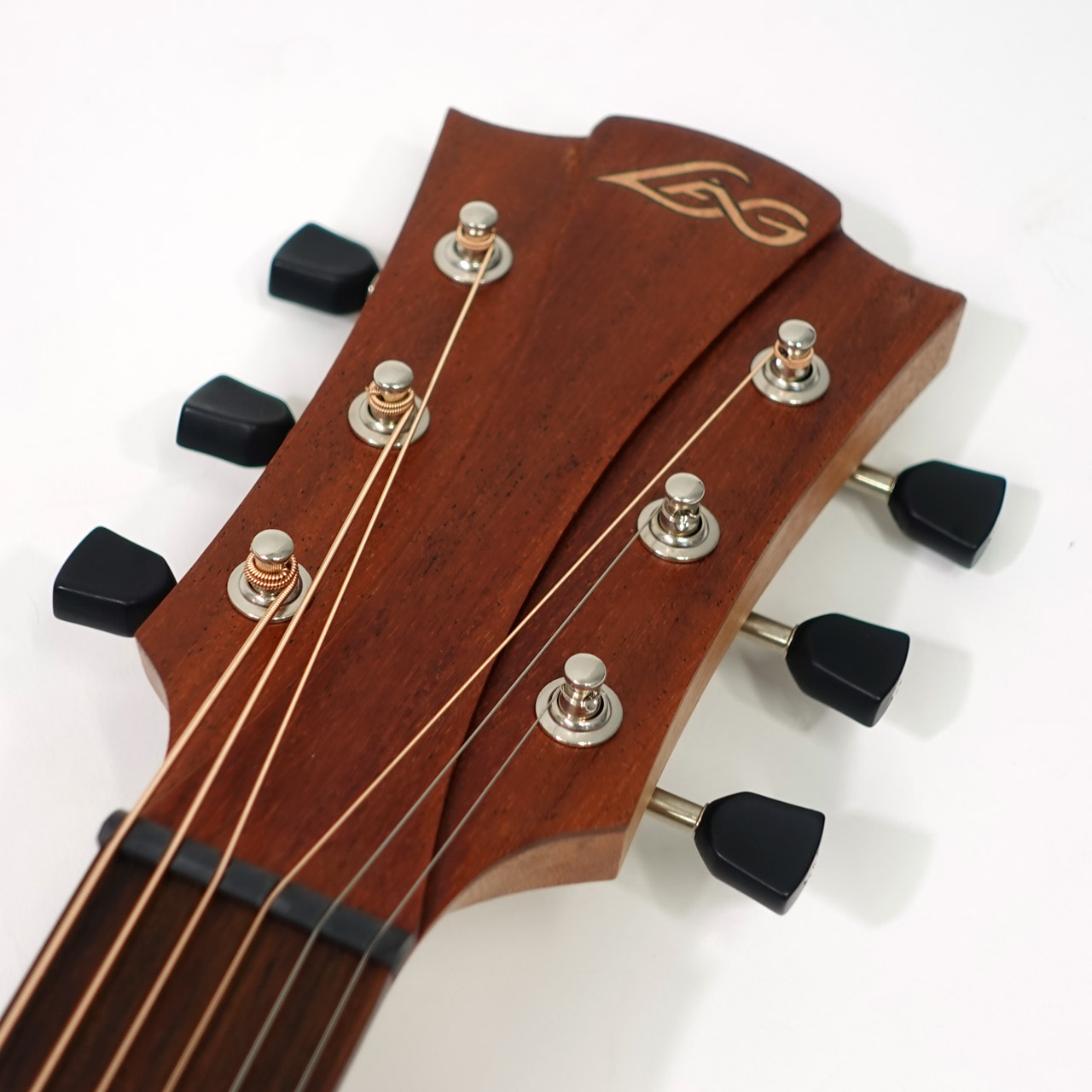 新たにヘッド突板をサイド&バック材とマッチングしたスウィーテニアマホガニーを採用し、新型オープンギアマシンヘッドなどアップグレードがなされています。