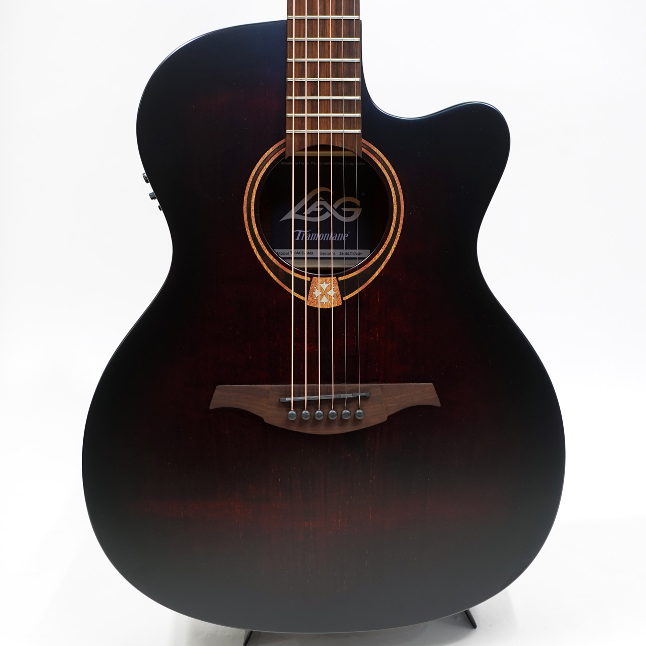 フランスのギターメーカー LAG Guitar、ちょっと小型なボディのエレアコ仕様です。