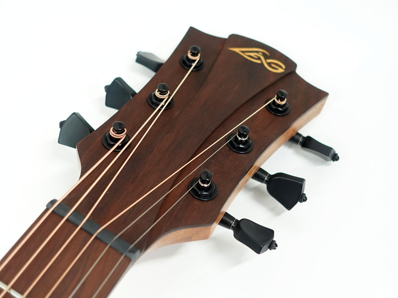 ピックガードやポジションマークなしのシンプルなルックスにウッディなサウンドホールや立体的なヘッドデザイン、フランスならでは?のこだわりのデザインですネ。