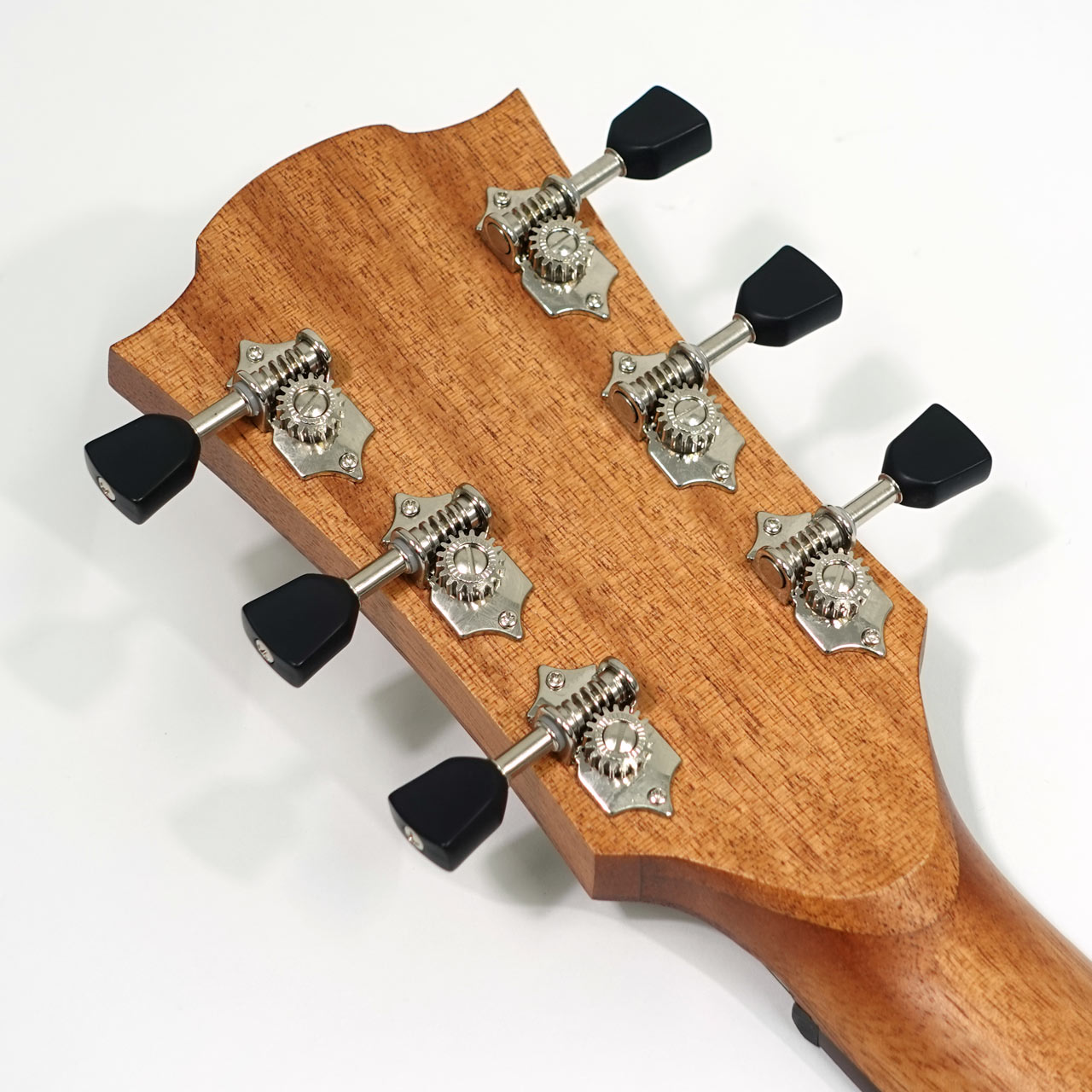 新たにヘッド突板をサイド&バック材とマッチングしたスウィーテニアマホガニーを採用し、新型オープンギアマシンヘッドなどアップグレードがなされています。