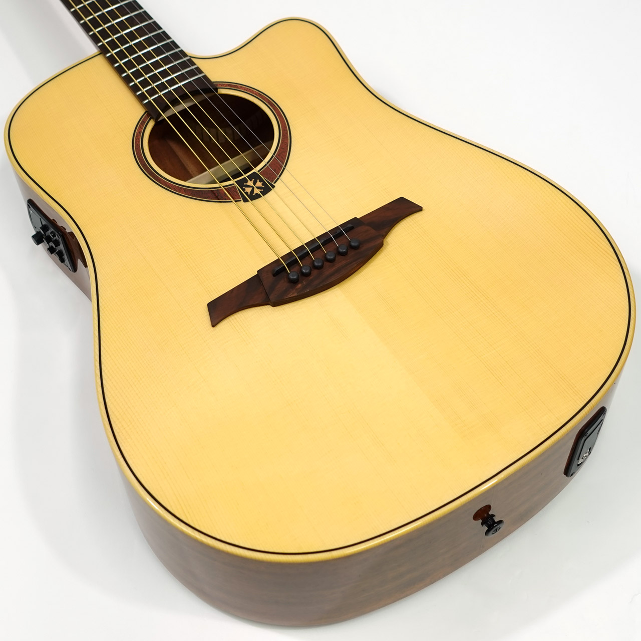 ドレッドノートスタイルのカッタウェイ仕様でいろんなジャンルで使える一本です。