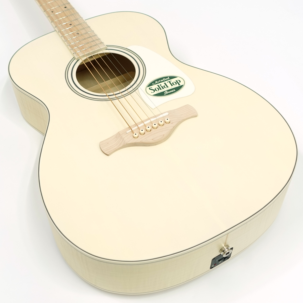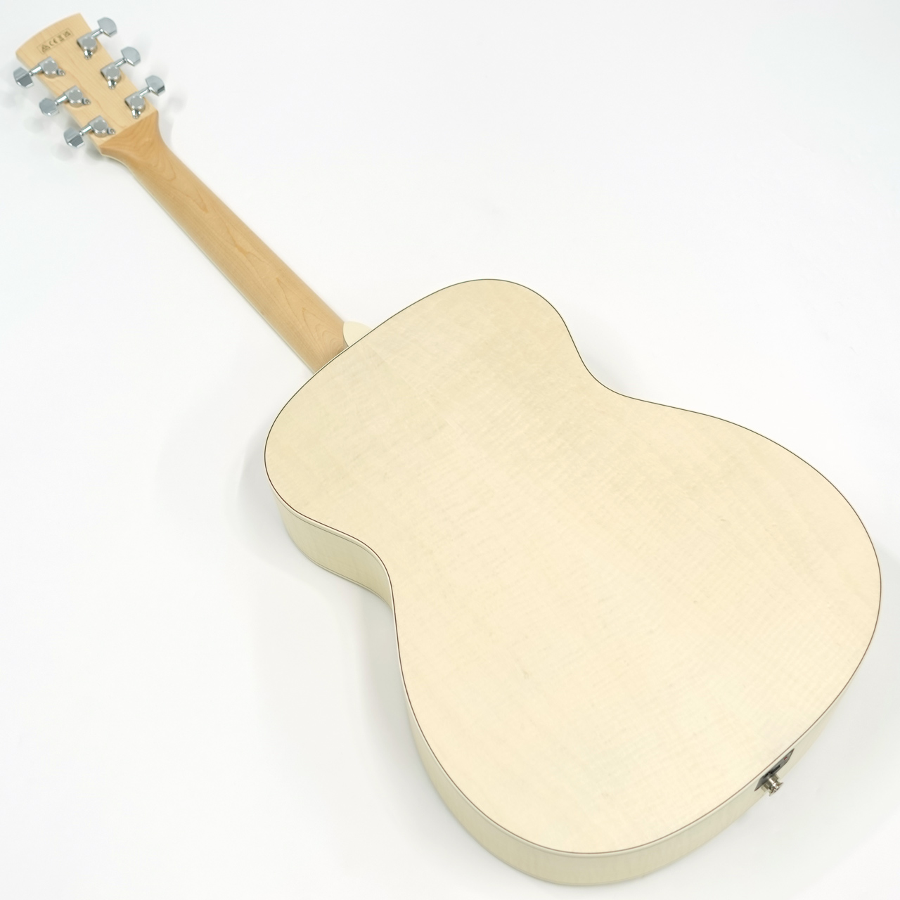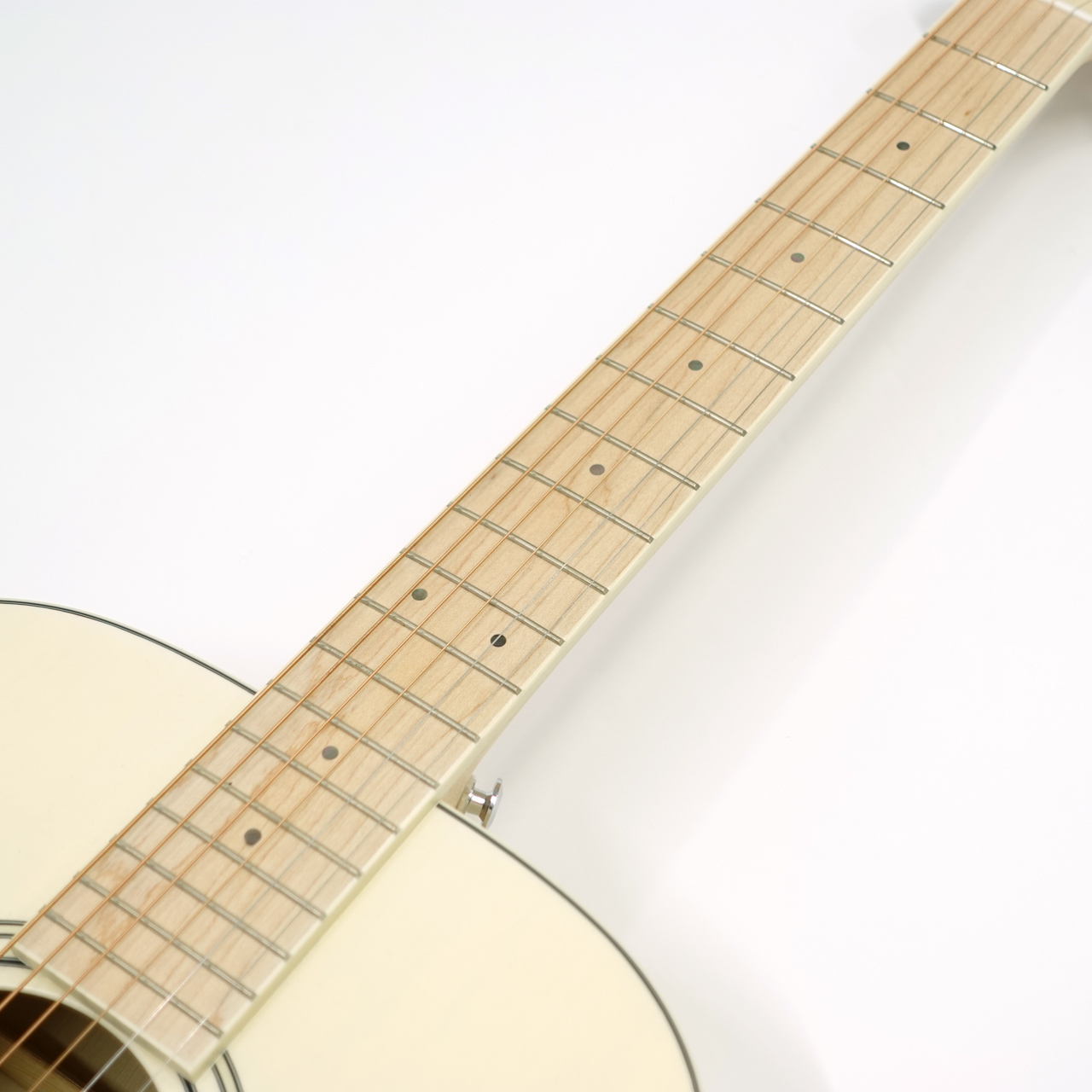白いフォークギターは多々あるもののメイプルネック・指板のギターは中々お目に掛かれません。